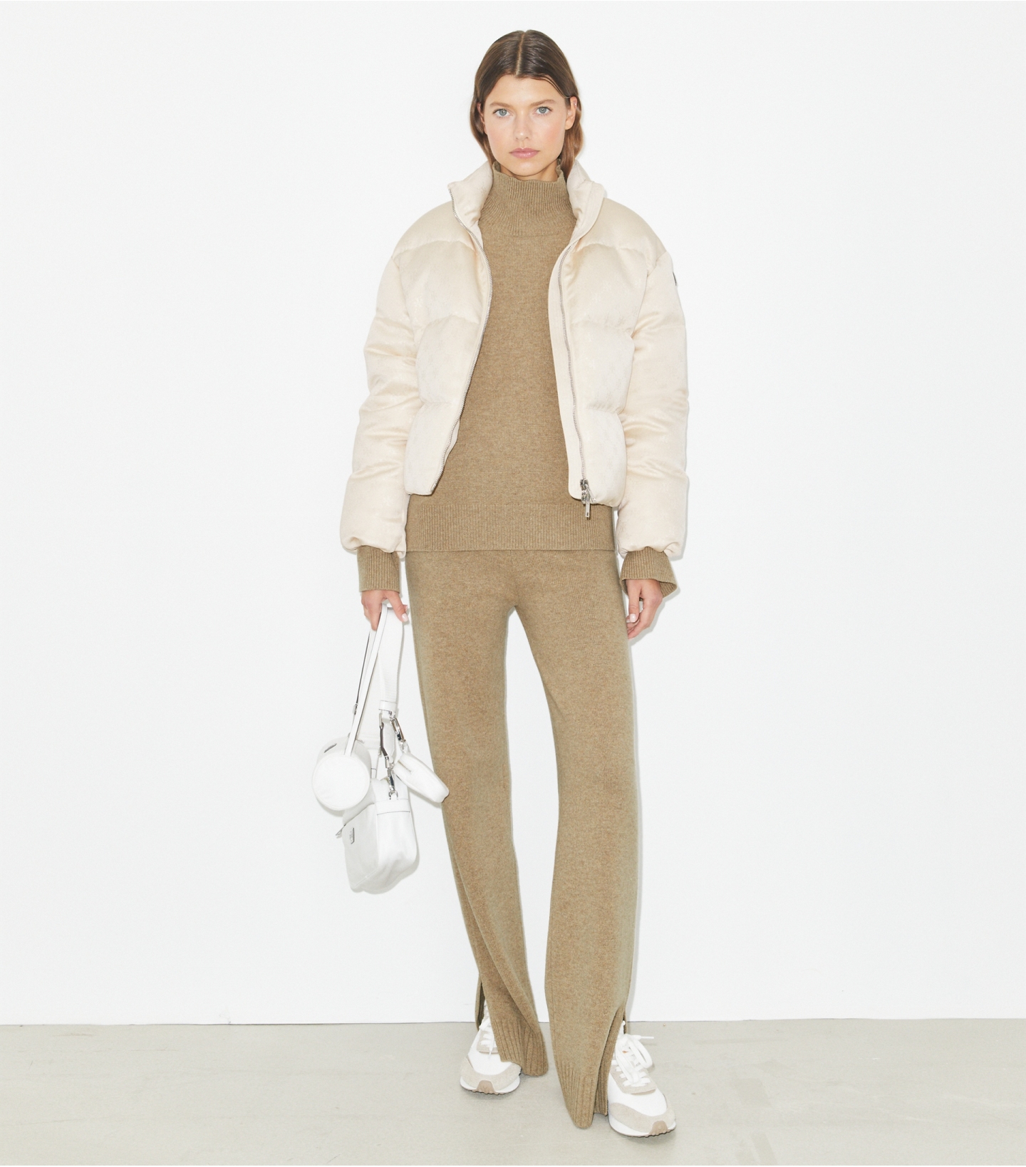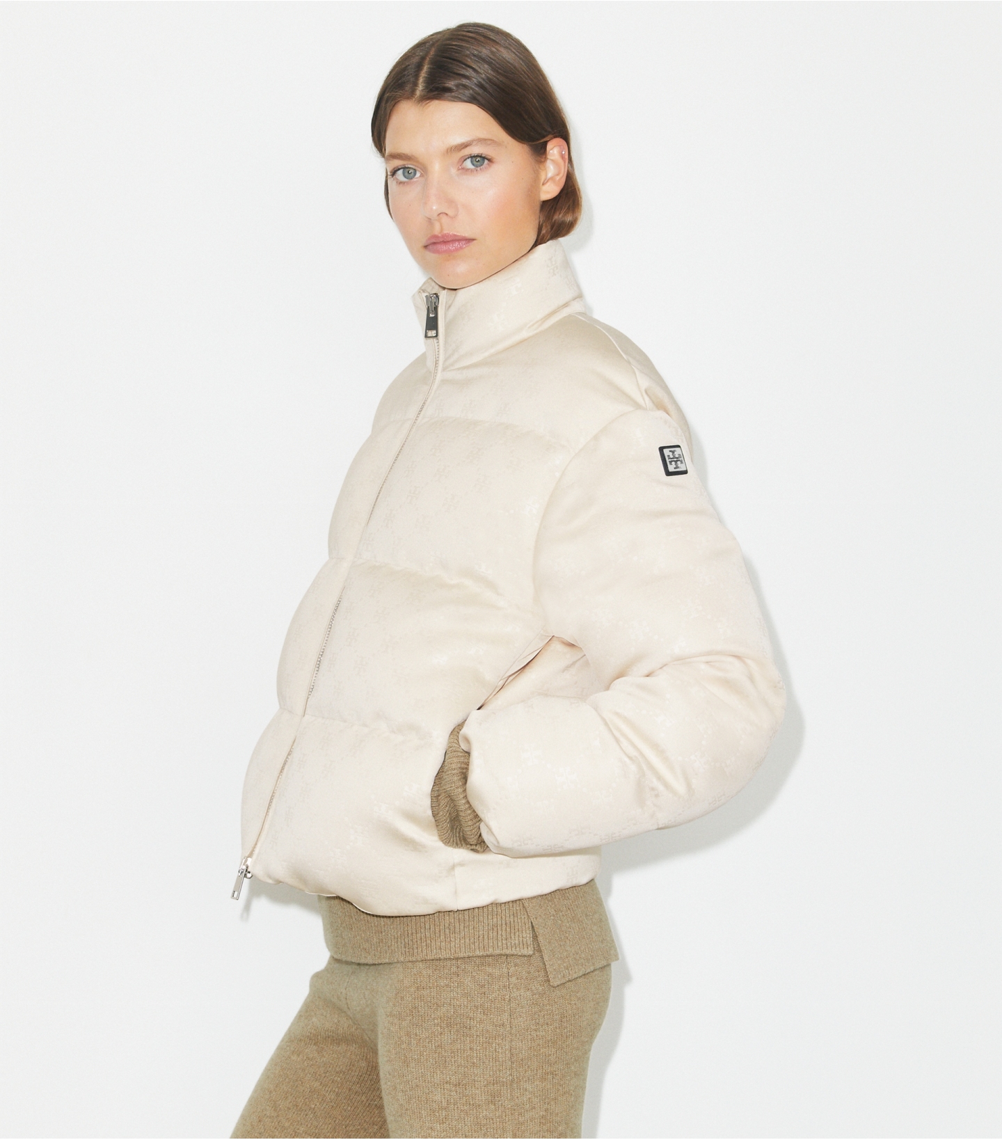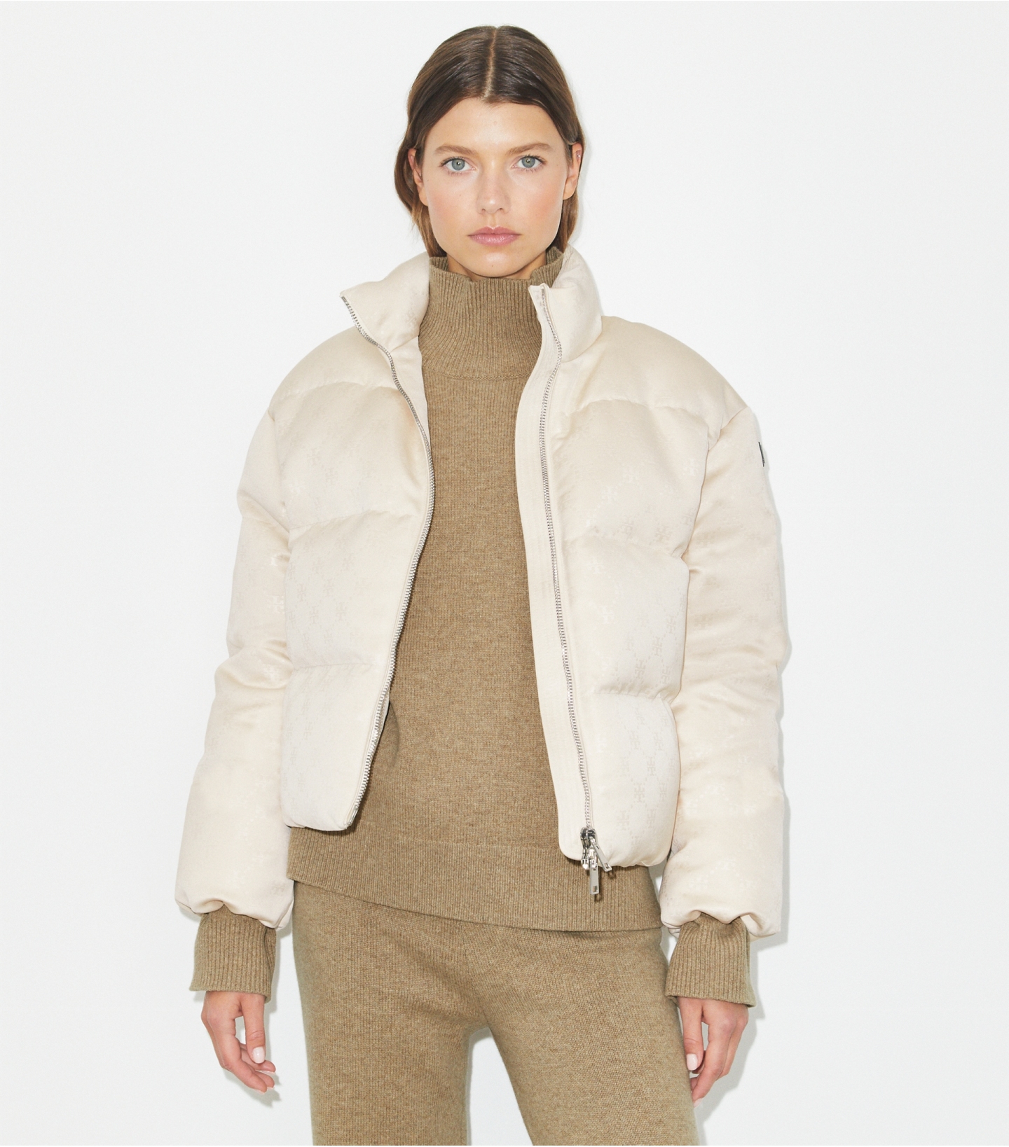 冬季外套以运动风为灵感,迎来焕新升级,并选用 T Monogram 印花缎面打造。这款绗缝羽绒夹克采用宽松版型,搭配全长双向拉链和可调节下摆,可轻松叠搭造型,御寒保暖,时尚有型。
