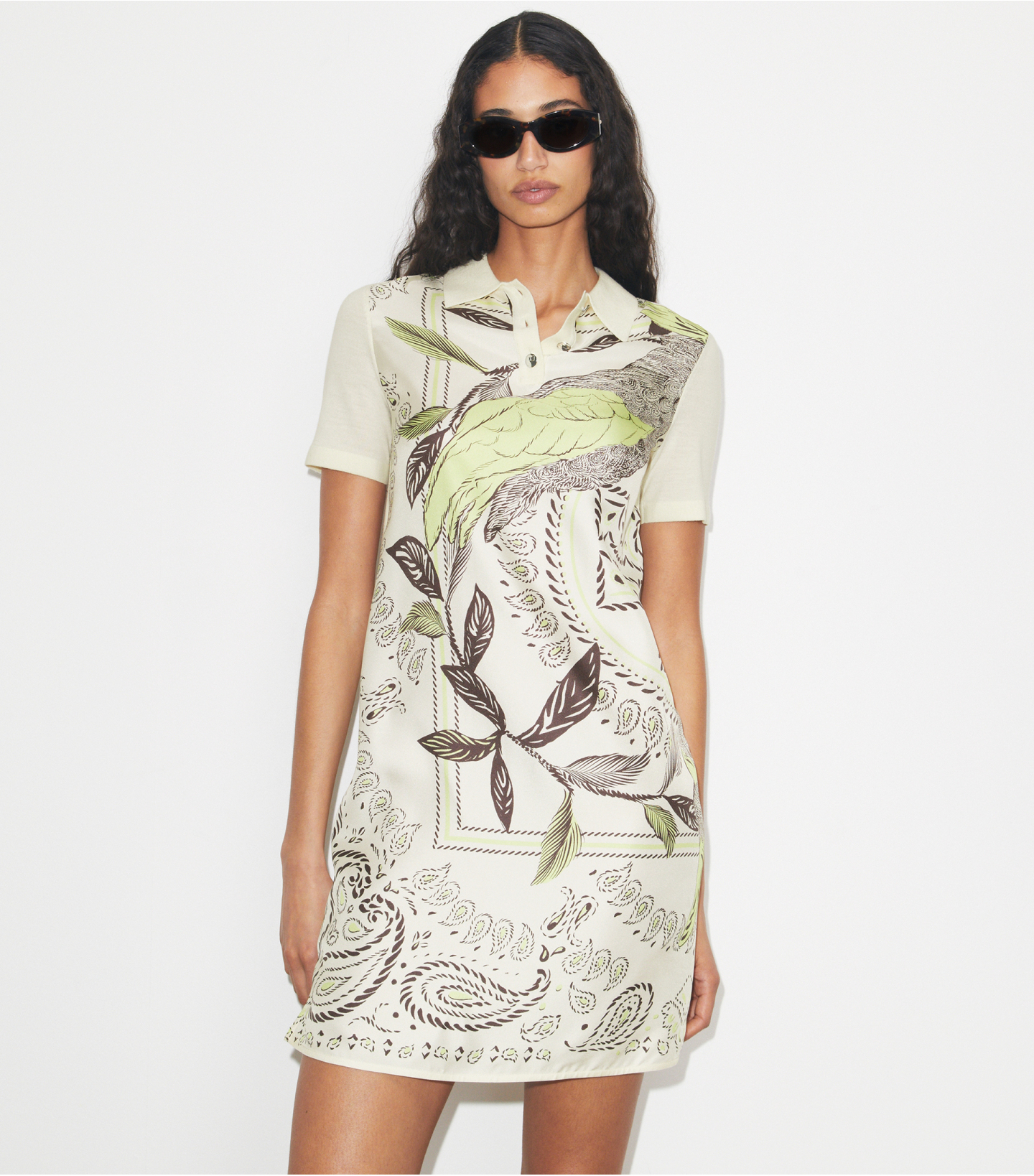 全新系列以简约主义视角,焕新诠释经典之作。利落廓形、精美面料与别致色调巧妙相融。这款花卉印花短袖 Polo 衫,精选斜纹桑蚕丝和羊毛面料打造,四季皆宜,可搭配牛仔、裤装、半身裙,尽显休闲优雅风范。现阶段可作为开衫内搭,天气转暖时可单穿。