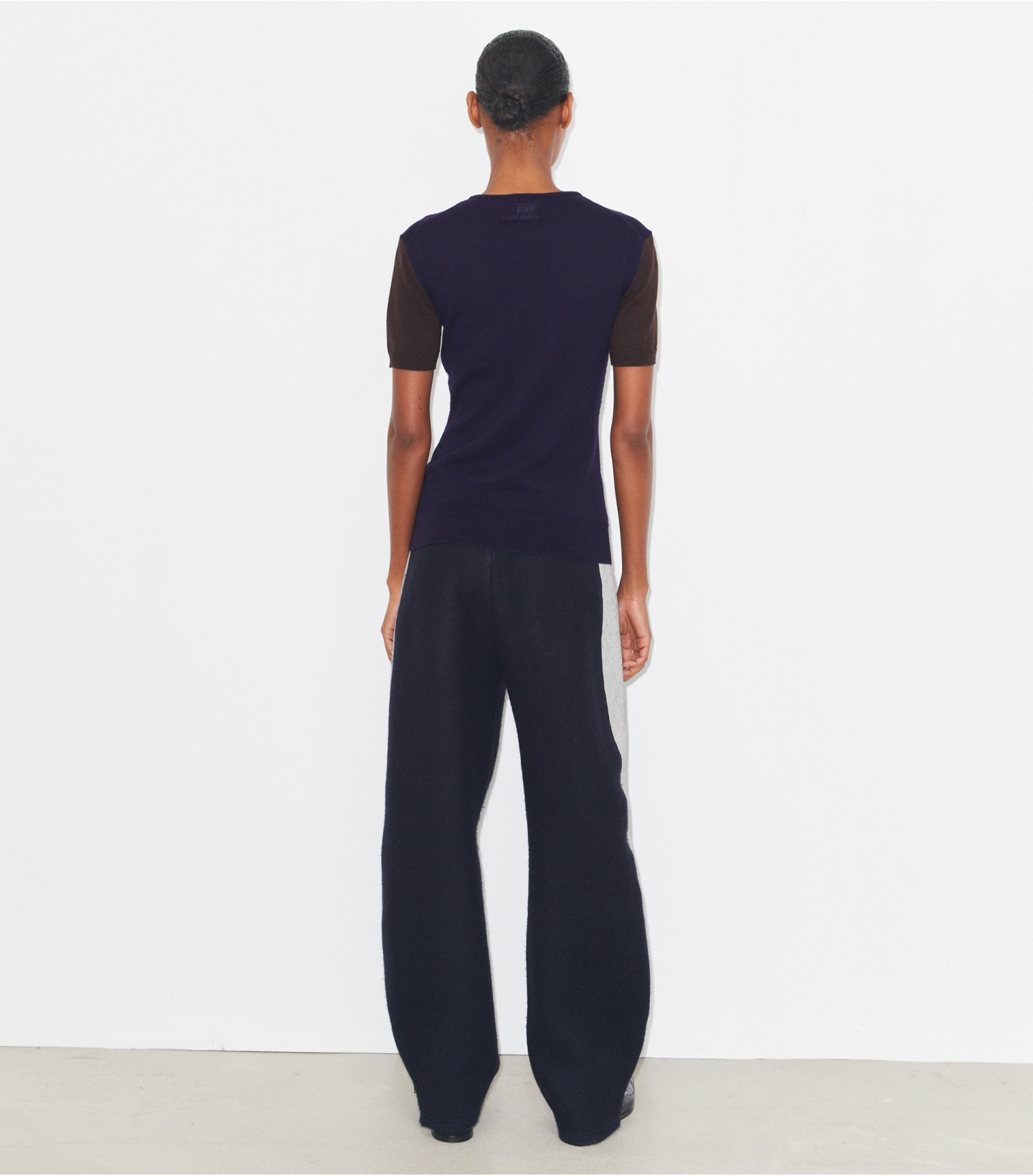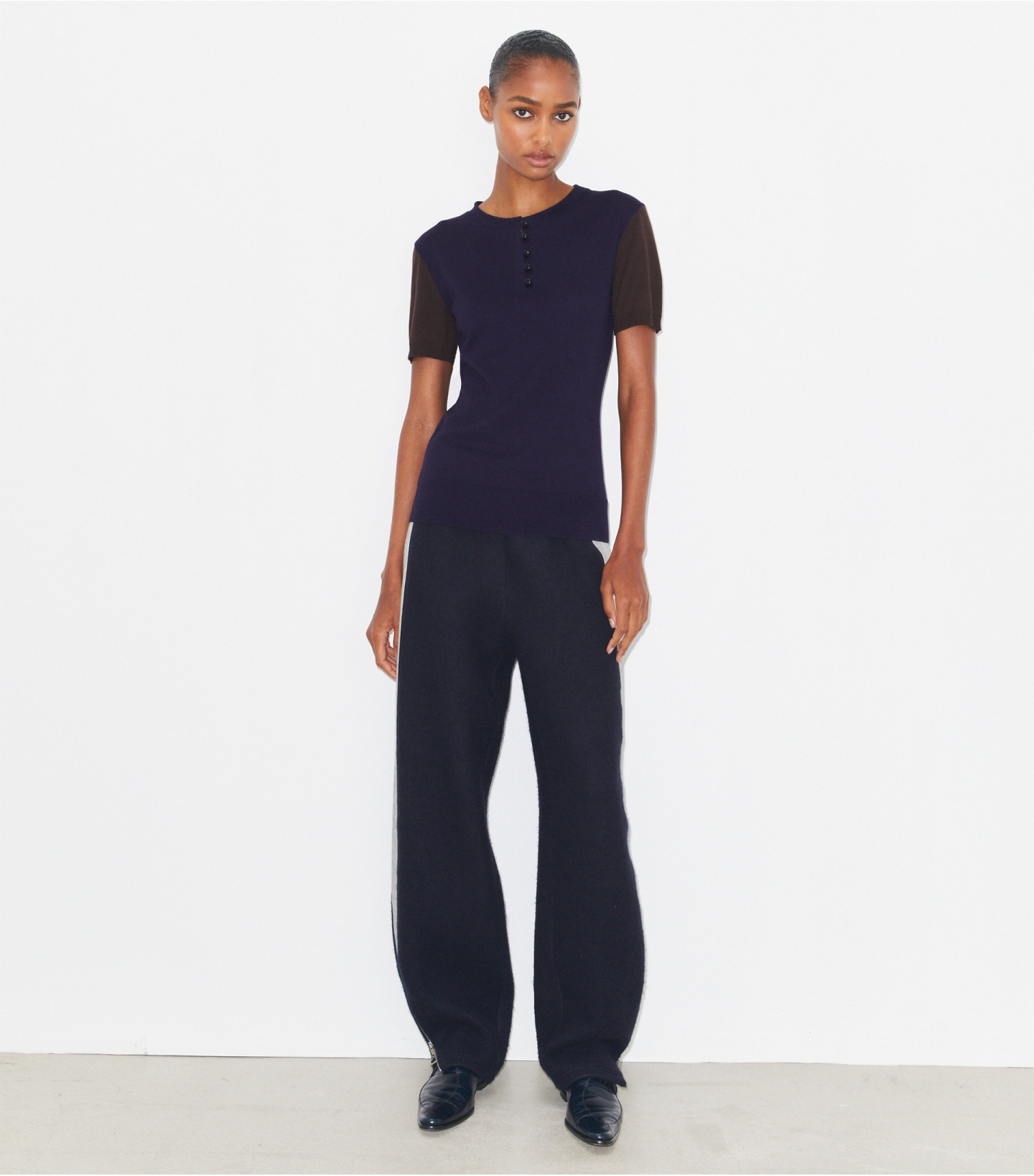 新款系列,以焕新元素重塑美式运动经典运动服,彰显时尚新风尚。在2025秋季秀场上亮相的双色羊毛衫,质地细腻,内搭同款开衫,轻松打造优雅又不失个性的时尚造型。
