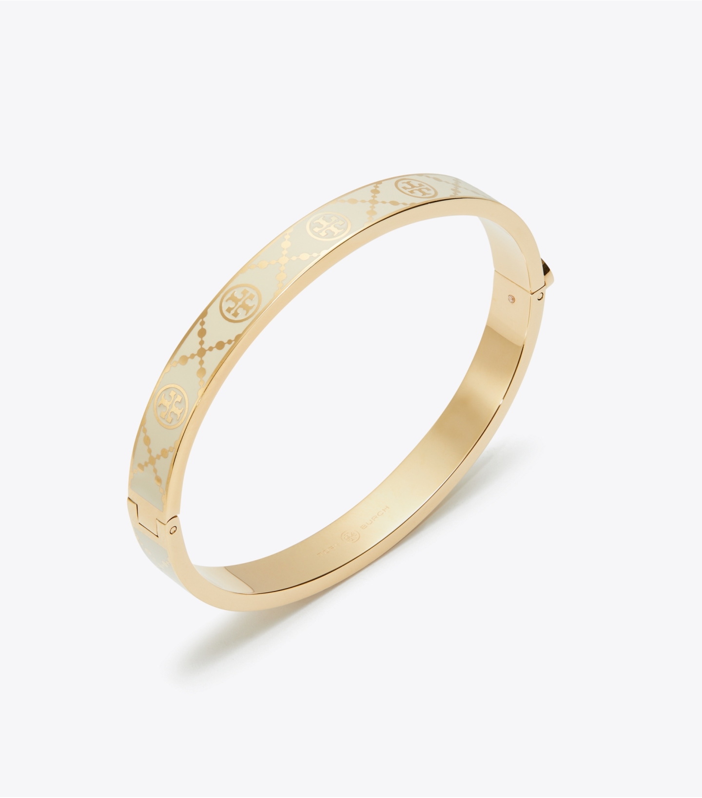 设计灵感来自于品牌标志性双 T Logo,象征力量感、对称美学与隽永格调。经典系列 T Monogram 手镯,采用珐琅打造,焕新演绎品牌经典图案。可叠搭其它单品,亦可单独佩戴。