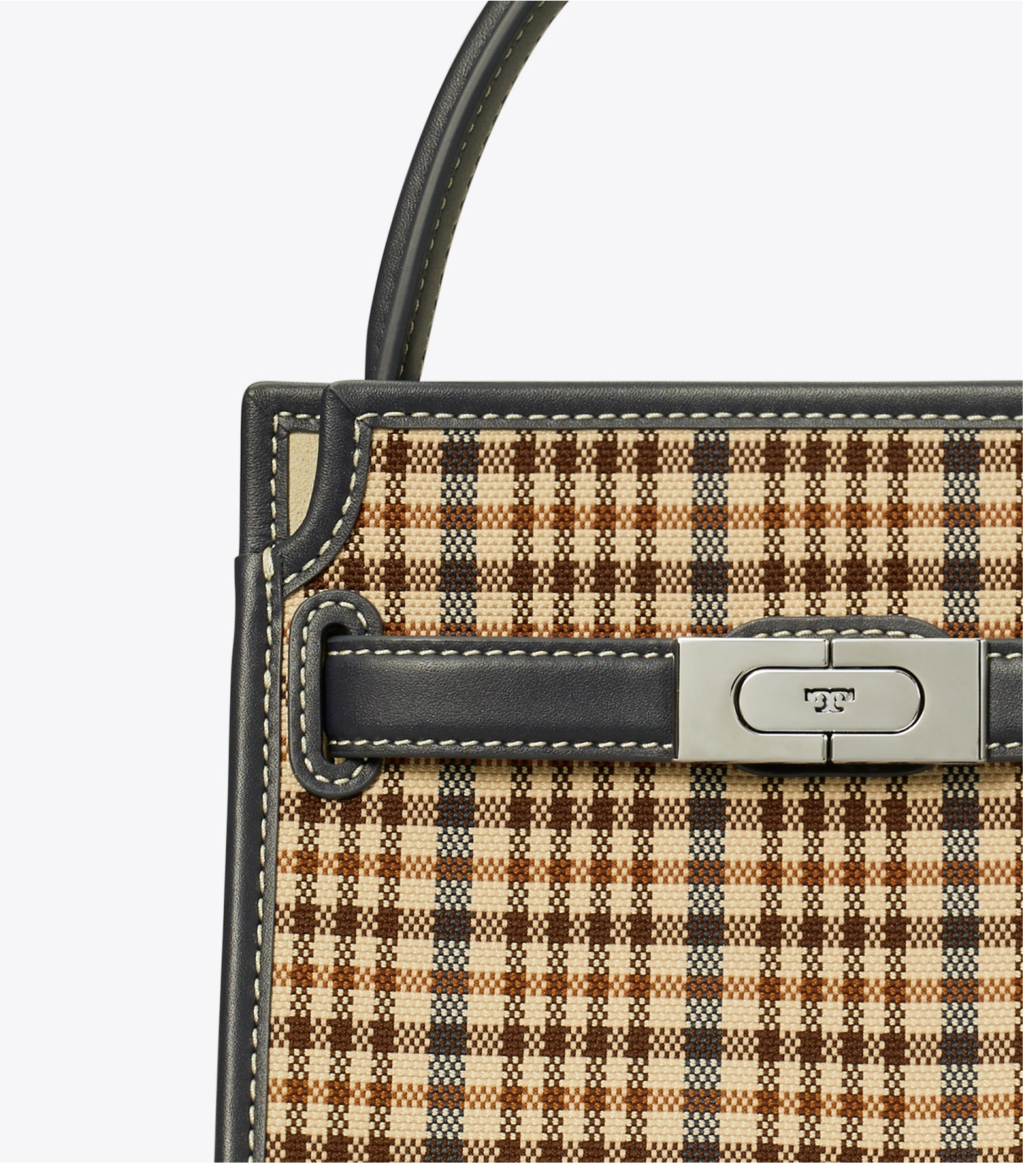 Lee Radziwill Double 小号格纹双层手袋,以柔和解构的造型结合多层材质演绎。包袋由分层式皮革组成,可展开犹如风衣的衣领;包口可敞开、系上一半的纽扣,或全部封闭。该包款选用皮革精心打造,饰以品牌标志性的钥匙与锁扣。系列以 Lee Radziwill 女士的名字命名,她勇敢无畏,自成一派。