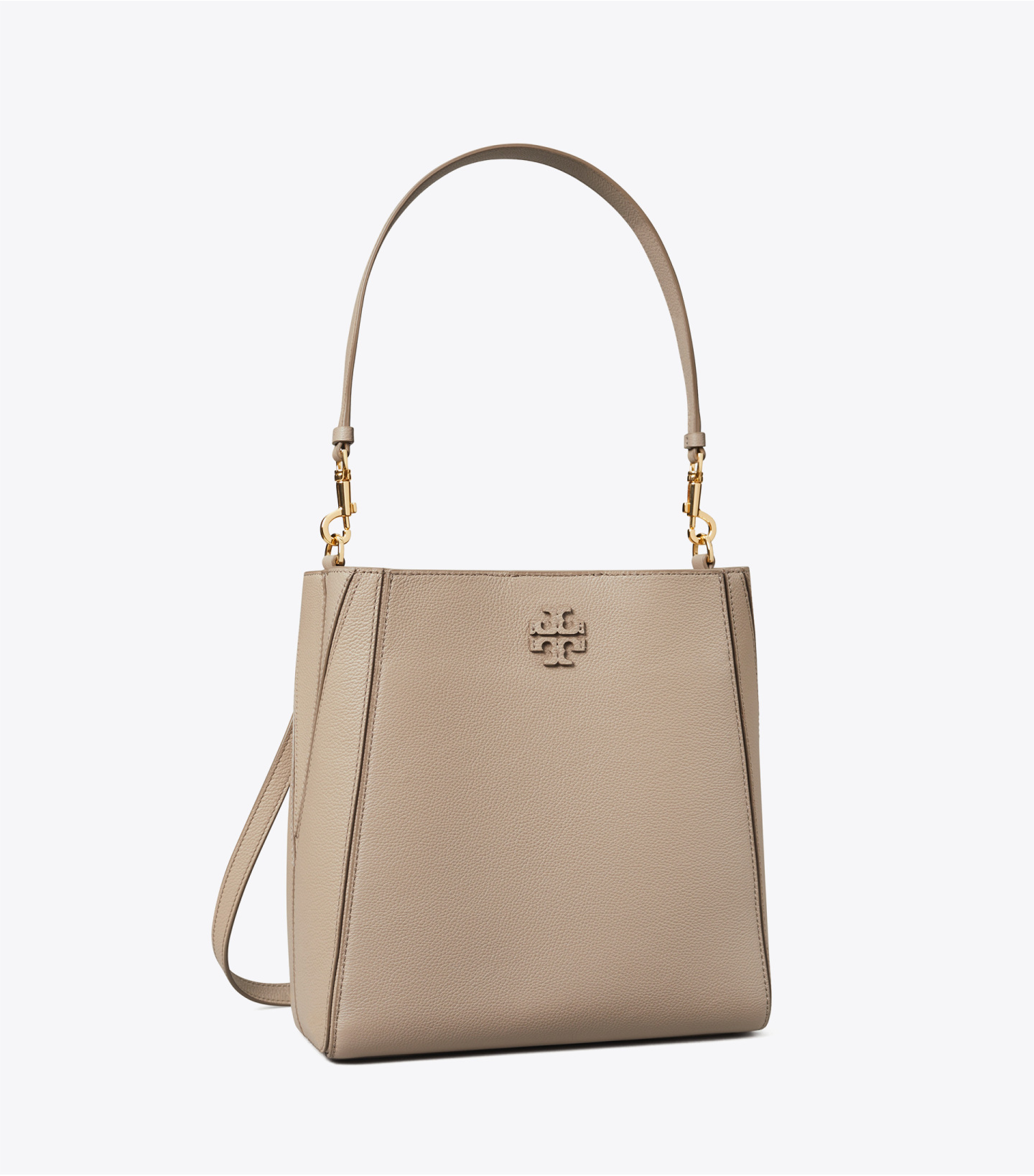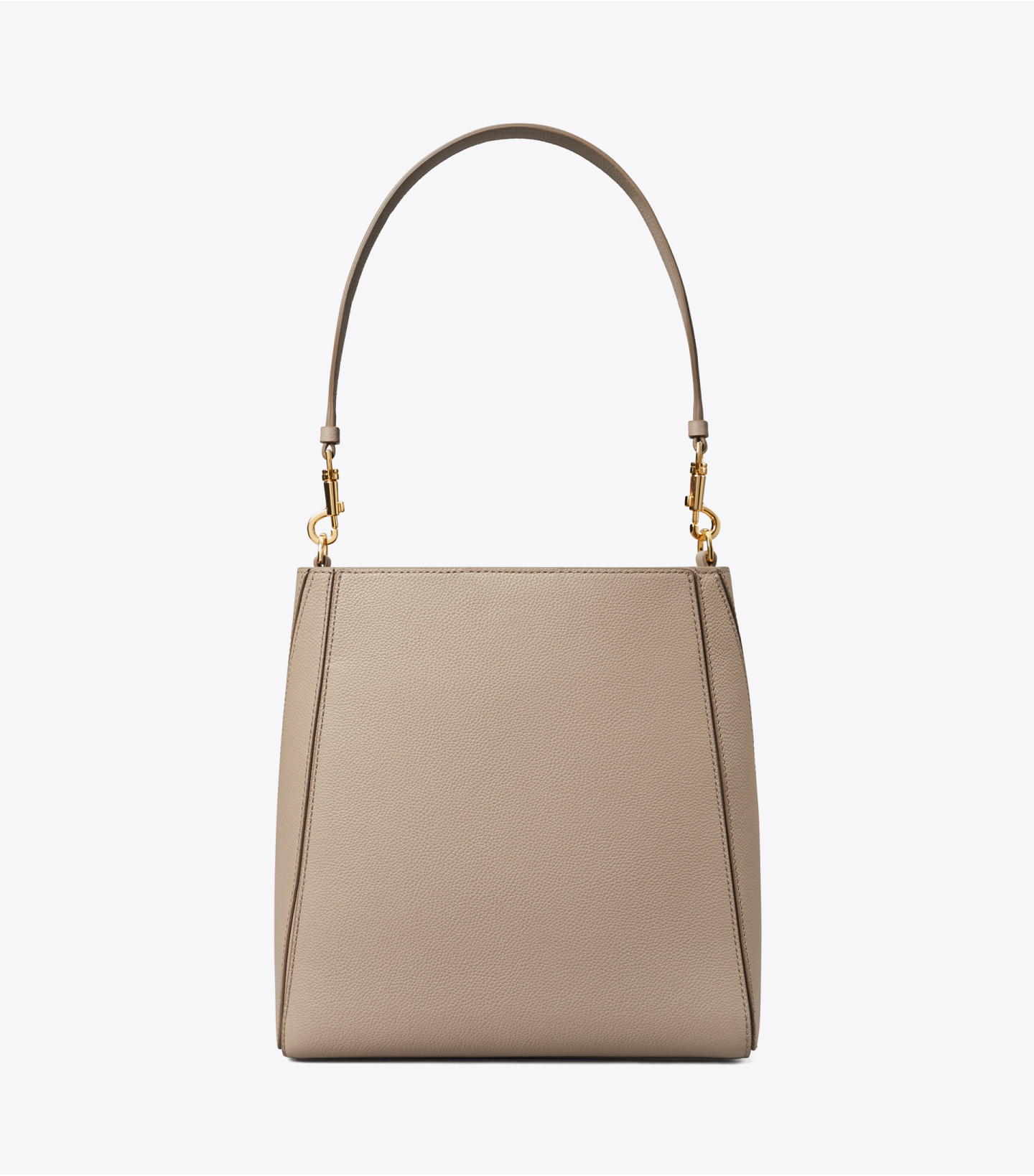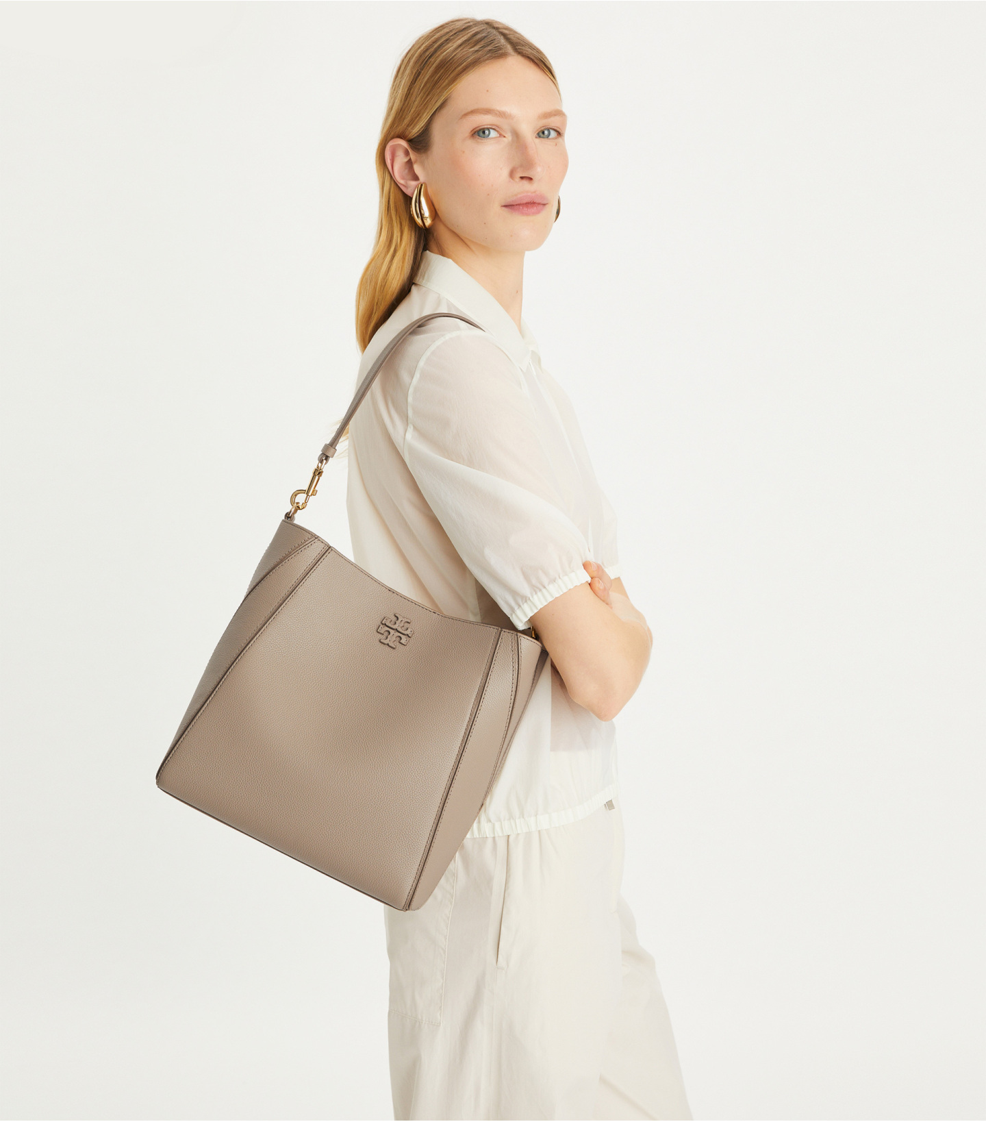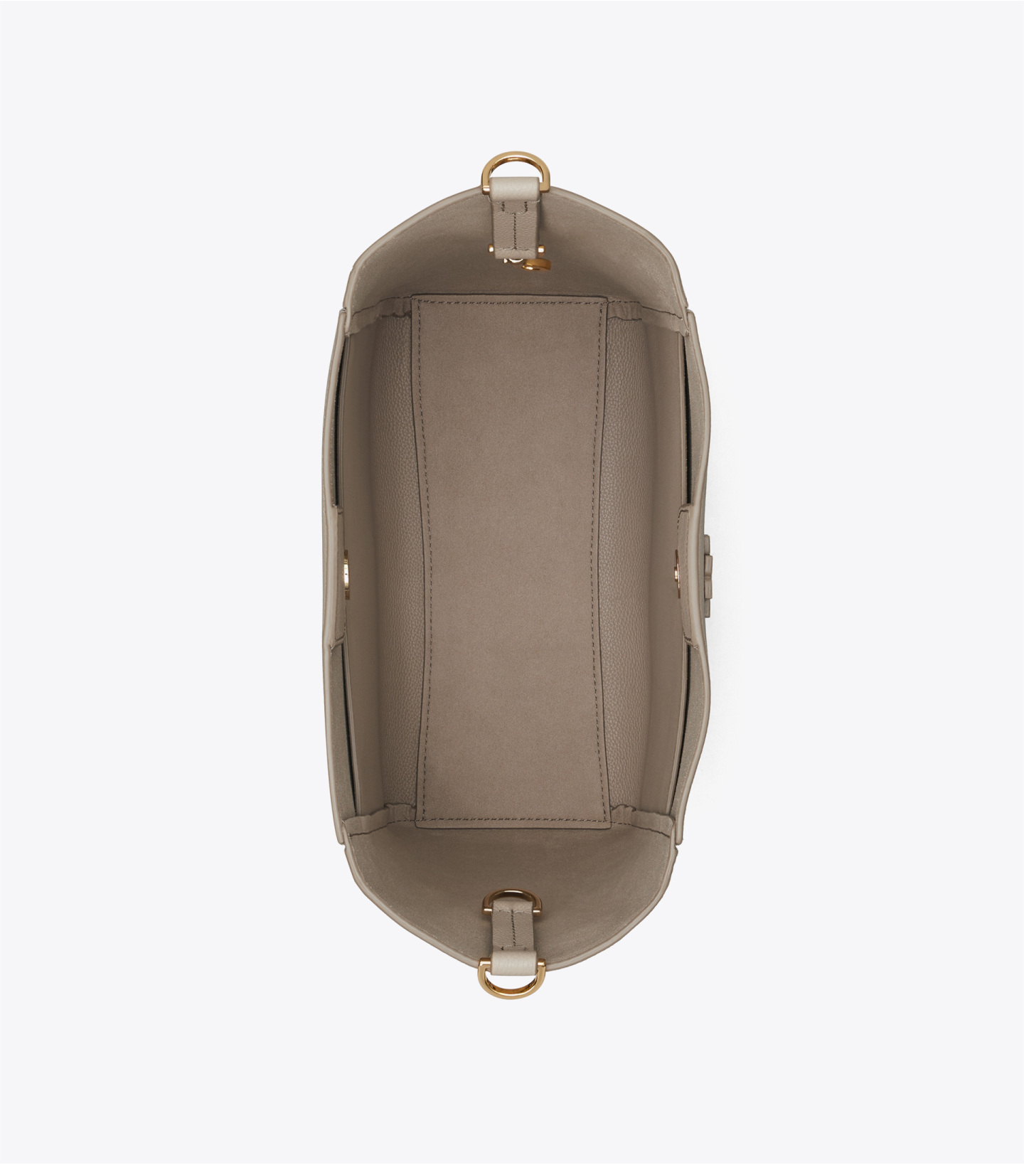 McGraw 水桶包精选皮革面料,配以模切工艺的标志性双 T Logo 和铰接式侧缝,廓形可收缩自如。可自在手提,也可随心斜挎。