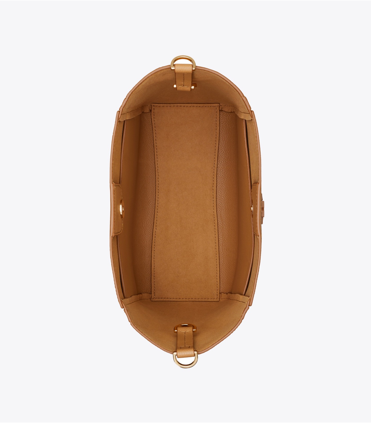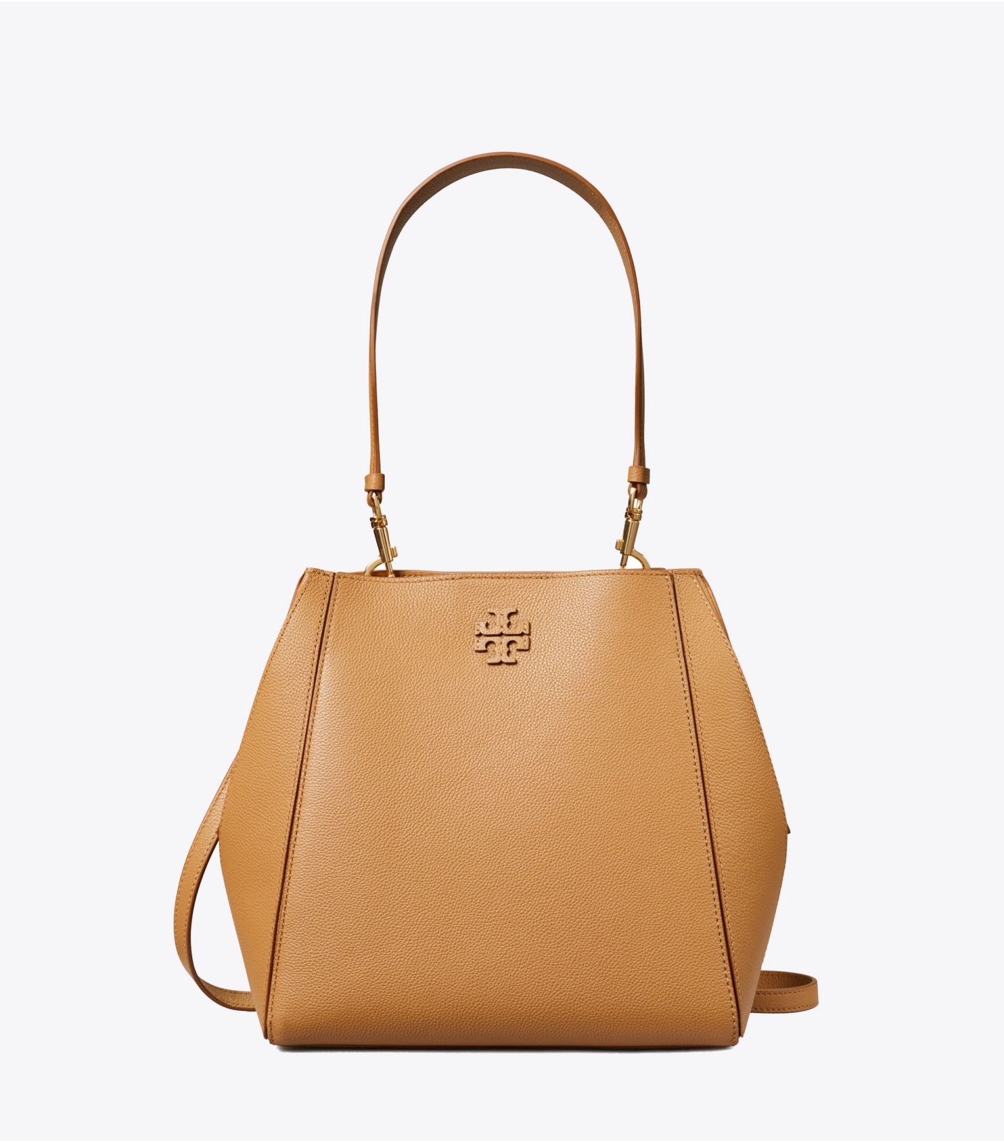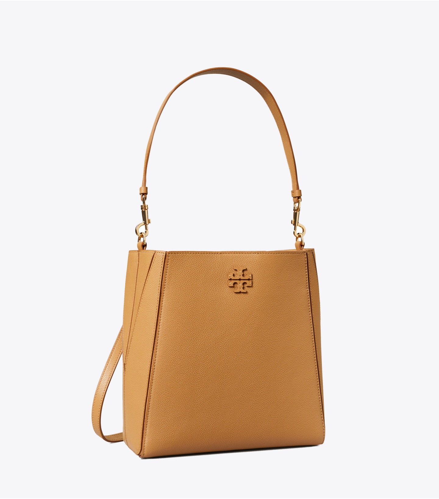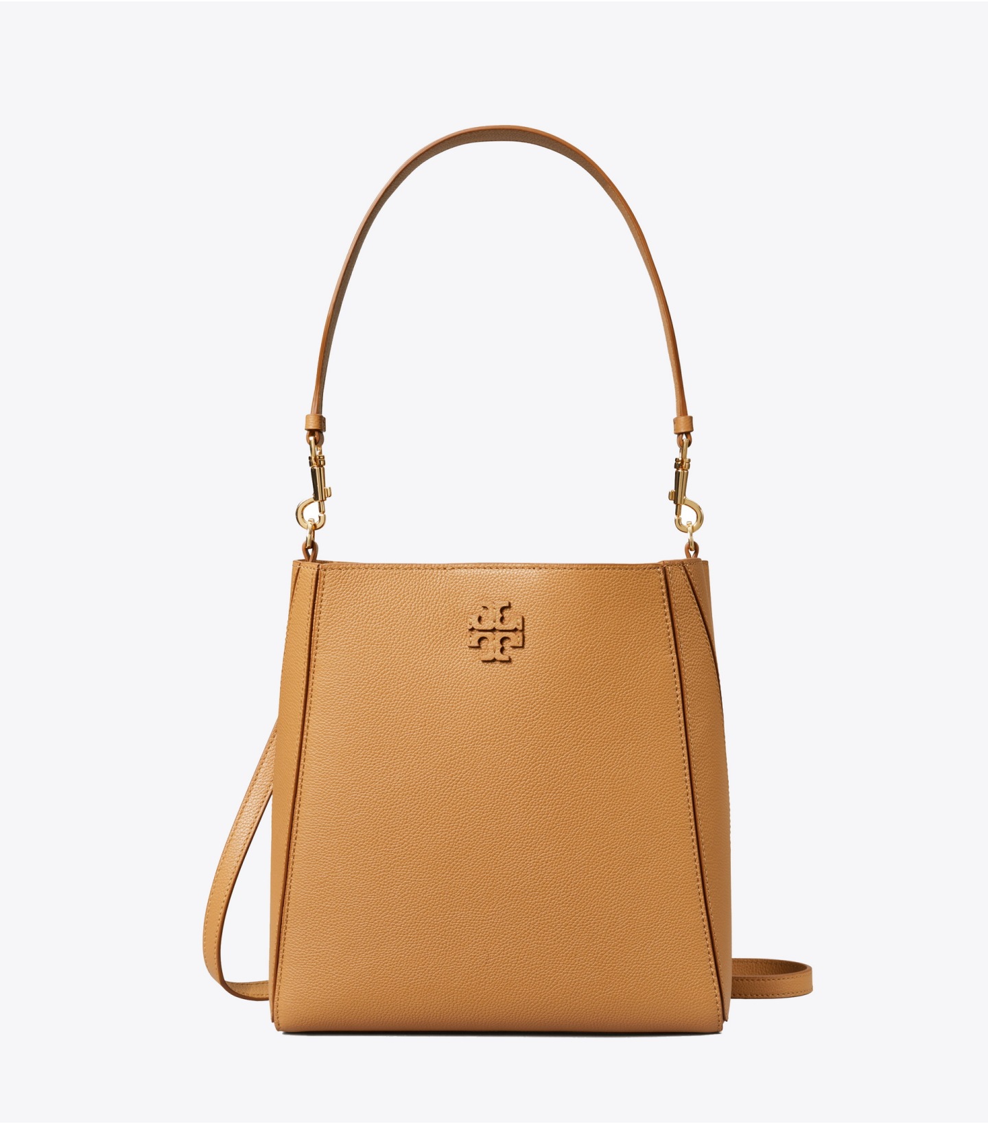 McGraw 水桶包精选皮革面料,配以模切工艺的标志性双 T Logo 和铰接式侧缝,廓形可收缩自如。可自在手提,也可随心斜挎。