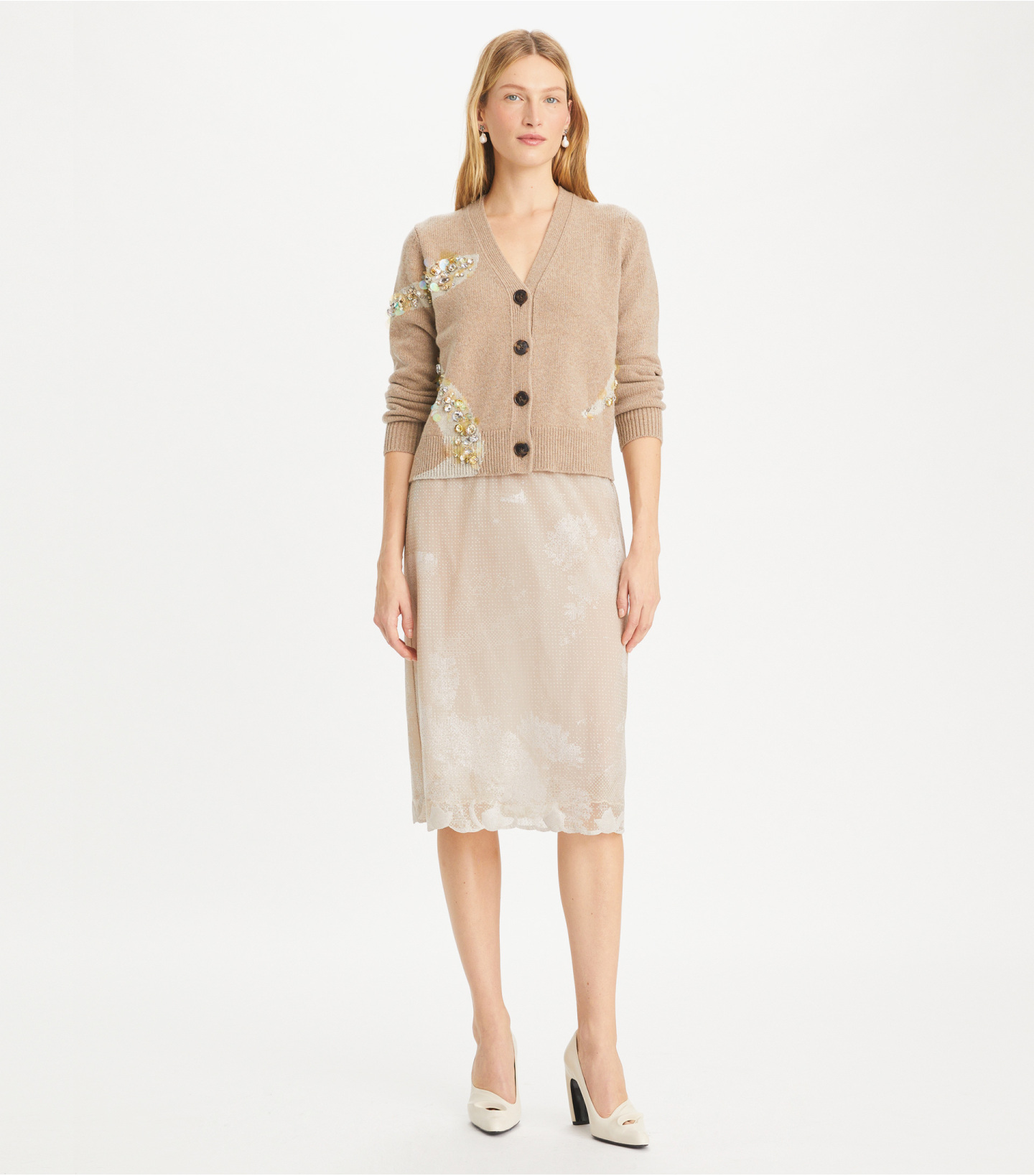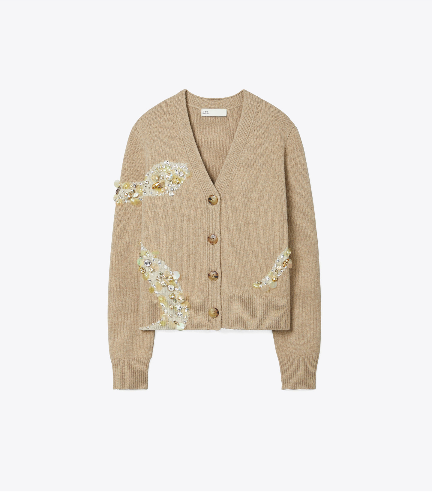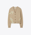 蛇年限定款开衫,配有蛇形饰件。这款 V 领开衫精选羊毛面料打造,配有牛角扣,休闲时尚。
