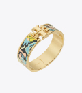 设计灵感来自于品牌标志性双 T Logo,象征力量感、对称美学与隽永格调。经典系列宽版手镯,采用多彩树脂制成。可单独佩戴,亦能叠搭腕表及手链,彰显经典时尚格调。