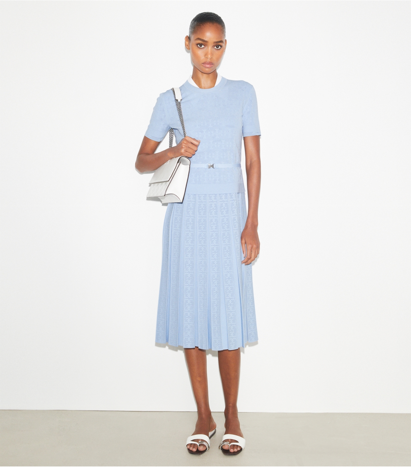 后领口勾环饰有“TORY BURCH”刺绣图案