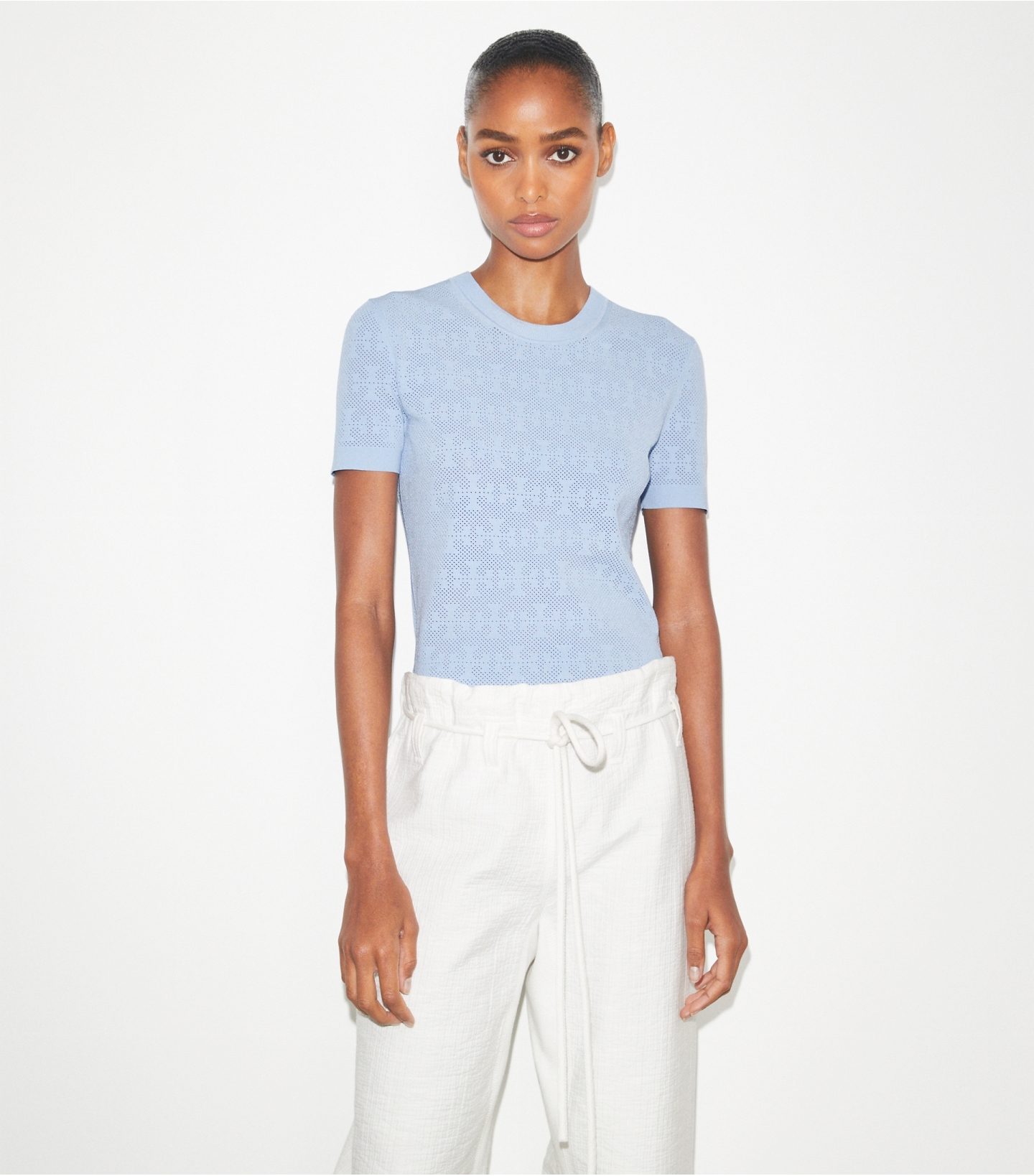 这款上衣精选 T Monogram 提花面料编织而成。采用修身版型和短款剪裁。可搭配同款开衫,呈现精致时尚的整体造型。