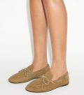 焕新演绎经典船鞋,穿着自在,尽显优雅格调。这款帆船鞋采用仿乐福鞋廓形,配有圆滑鞋头,清晰顶部缝线和环绕式系带。可赤脚穿着或搭配袜子。