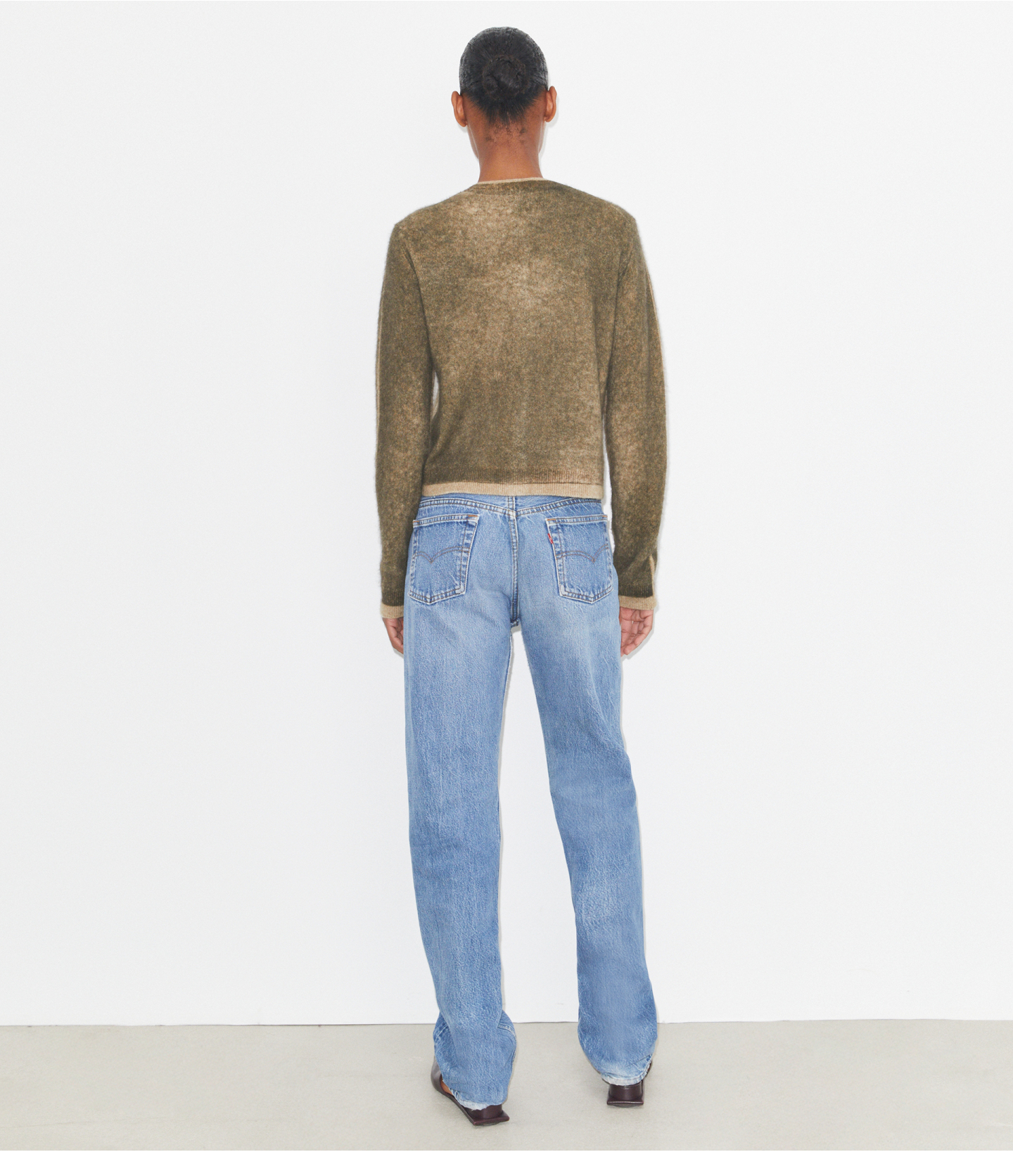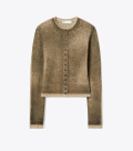 这款羊毛开衫精选羊绒和桑蚕丝混纺面料而制,采用重水洗和预缩工艺,打造毛茸般柔软触感。短款廓形罩印开衫图案,为这款经典运动装增添超现实主义元素。