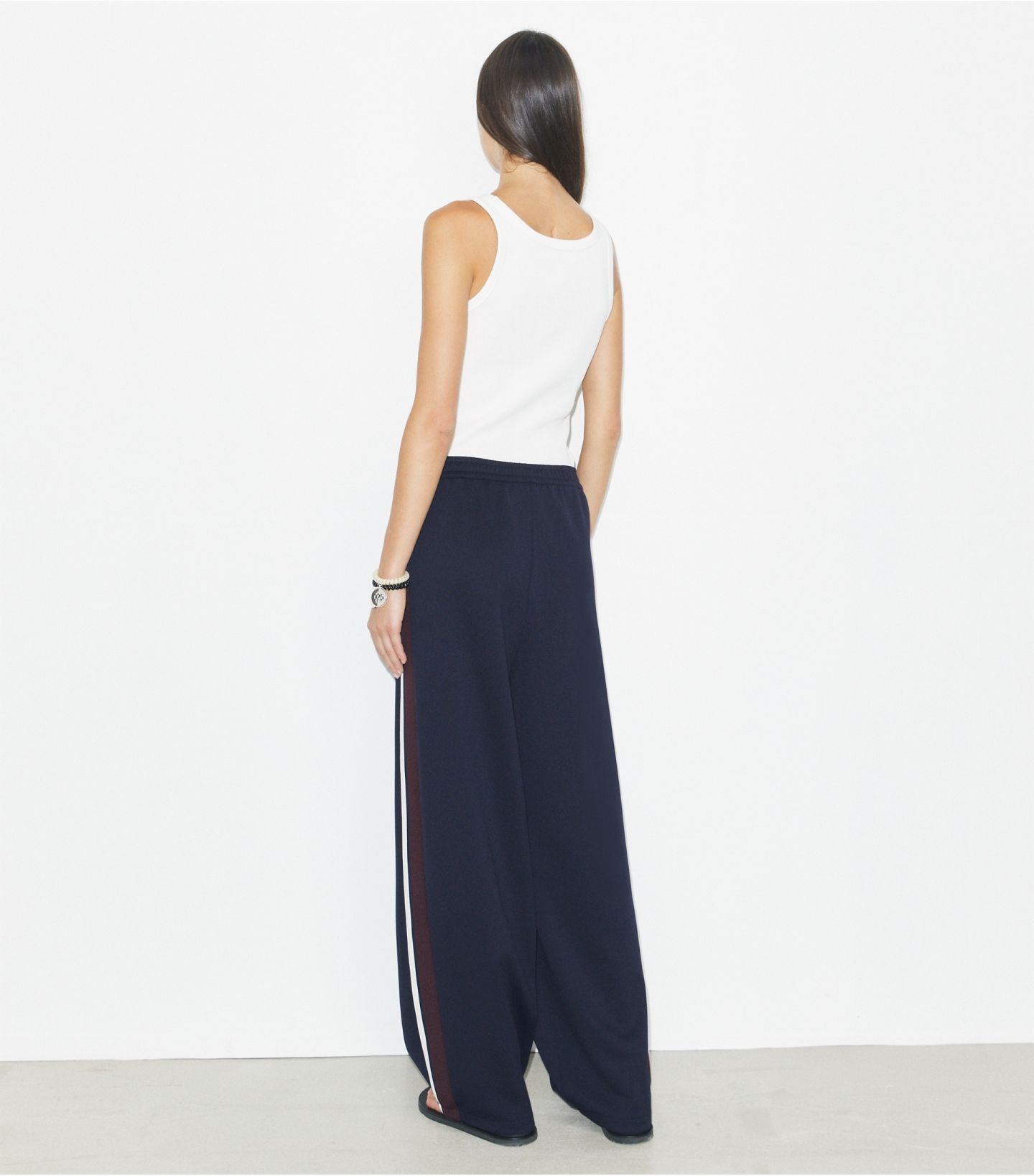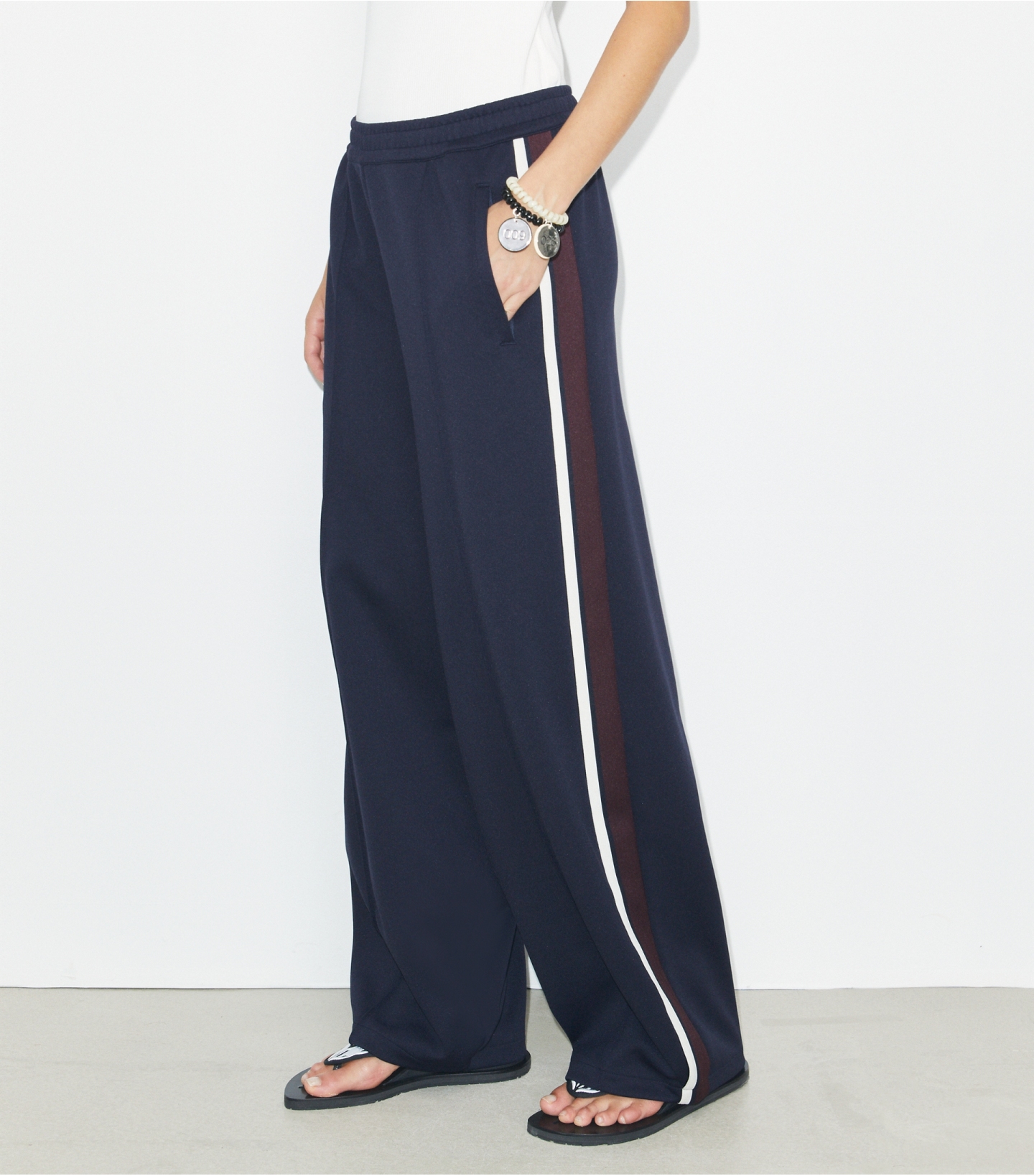 这款灵感源自70年代的运动裤,采用现代版型设计,宽松舒适,打造慵懒休闲造型。腰带柔韧舒适,内缝拉链口袋隐蔽实用,方便收纳随身小物。侧缝饰有对比色条纹针织带。