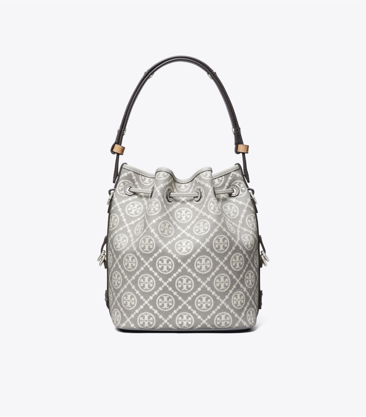 这款实用水桶包采用细腻皮革饰边,配有可调节顶部提柄,可挎在肩部,另有可拆卸斜背带,可随心变换背法。可通过金属双 T Logo 按扣调节抽绳长度。按压按扣可调节抽绳,松开即会锁上。可拆卸拉链小包,便于有序收纳。每个细节均经过悉心考量,尤其注重功能性与多样性的结合。