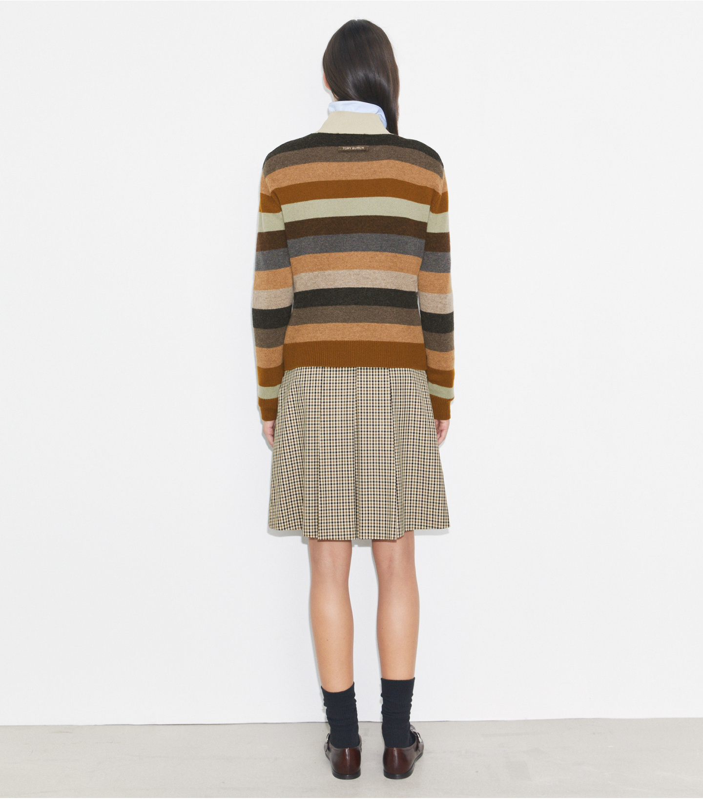 后领口处以链式缝线工艺饰有“TORY BURCH”勾环
