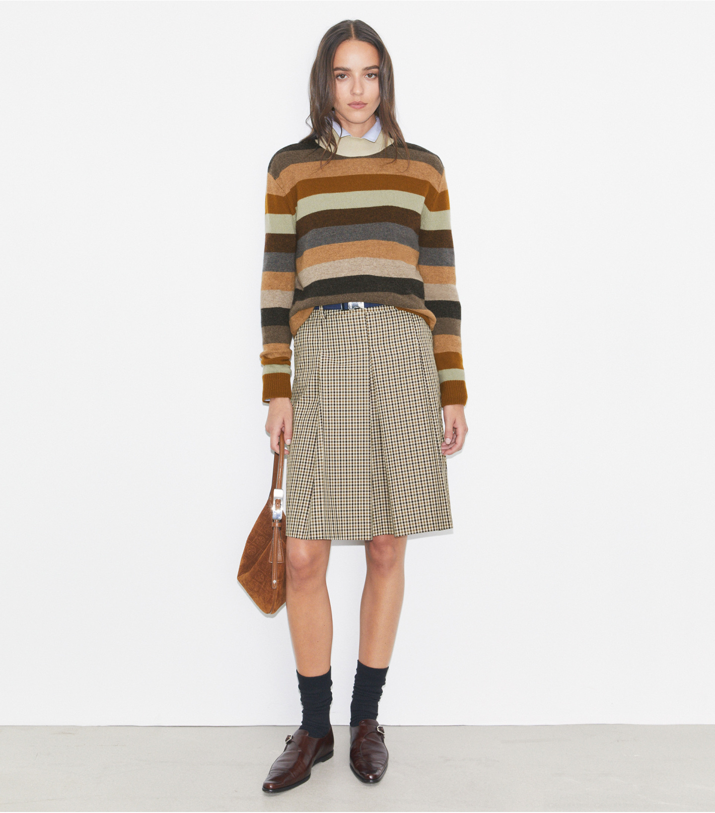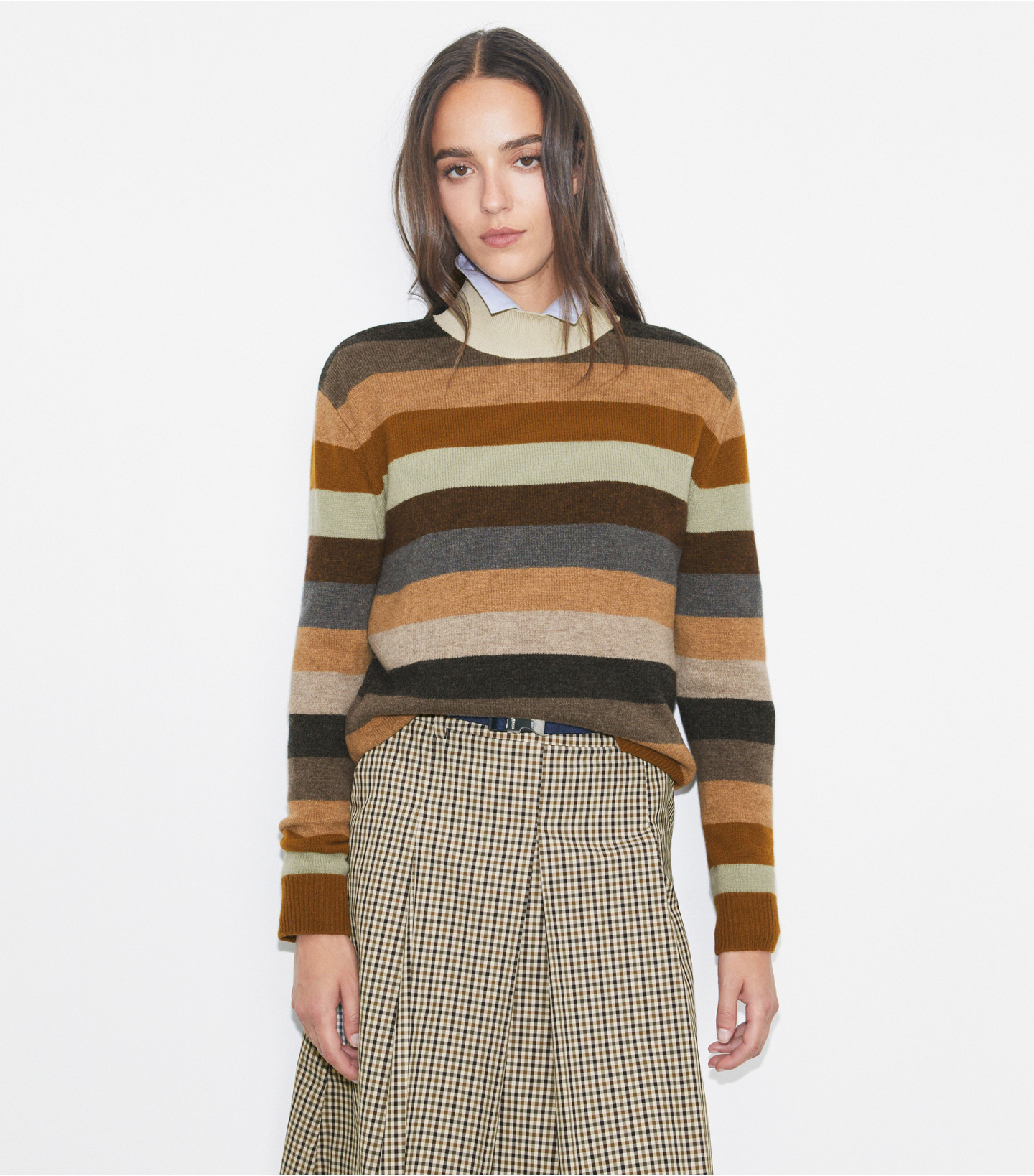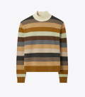 精选温暖羊毛制成的高领毛衣,剪裁宽松,搭配大地色条纹设计,是寒冷天气下的必备单品。
