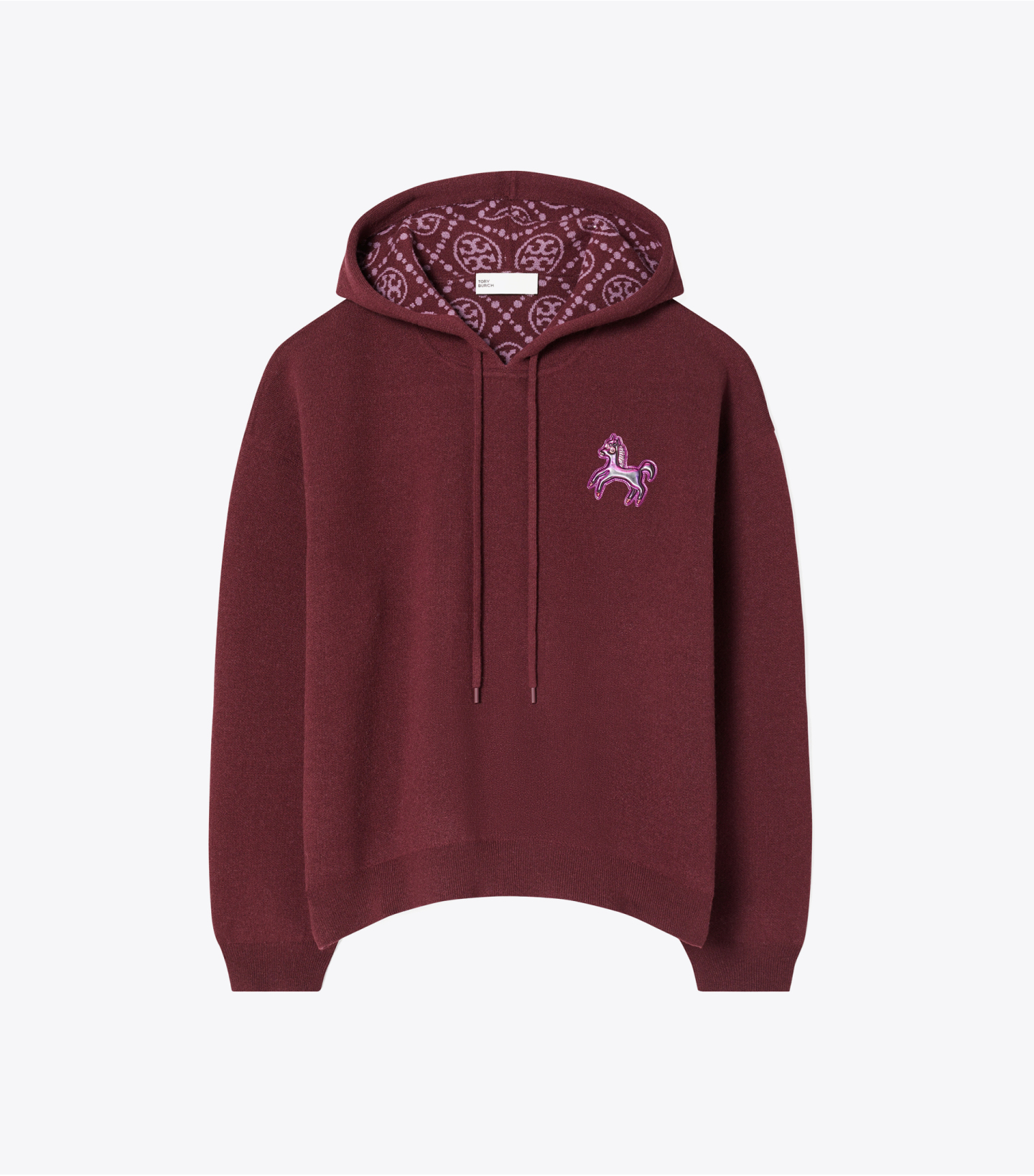 马年特别系列,尽释骏马的风格本质:优雅自信、充满力量。这款短款连帽衫,精选温暖羊毛制成,内里点缀 T Monogram 提花,左袖饰以灵动小马贴饰。