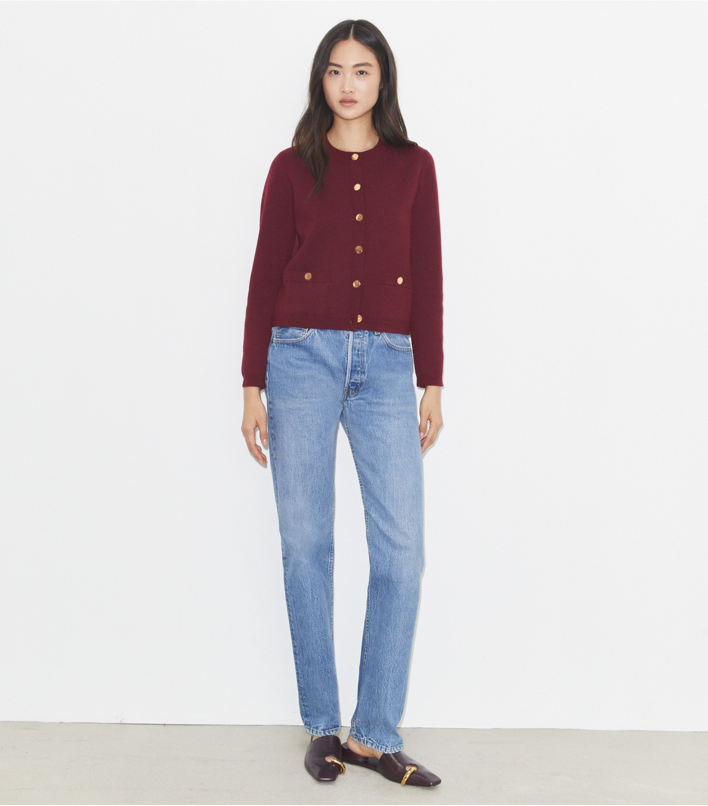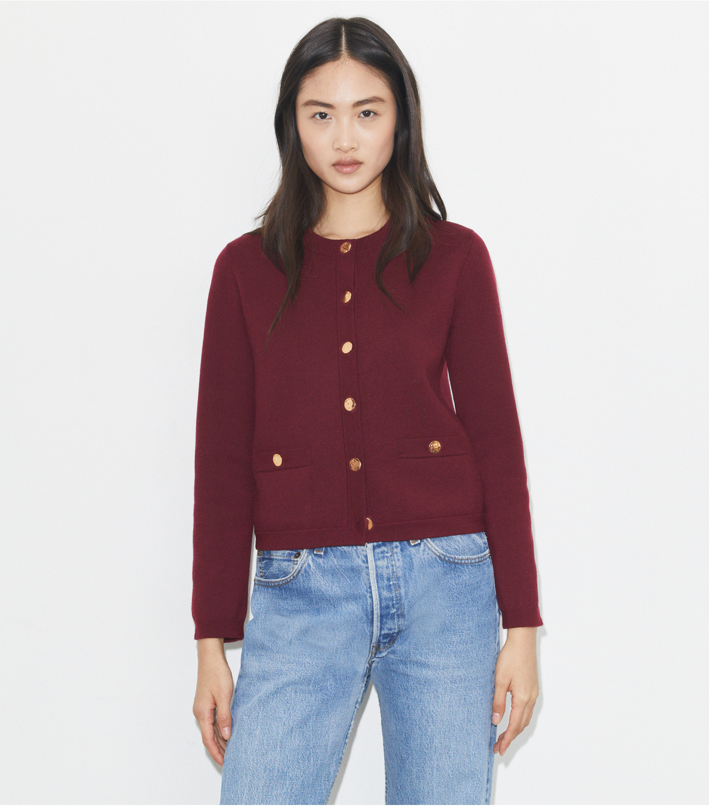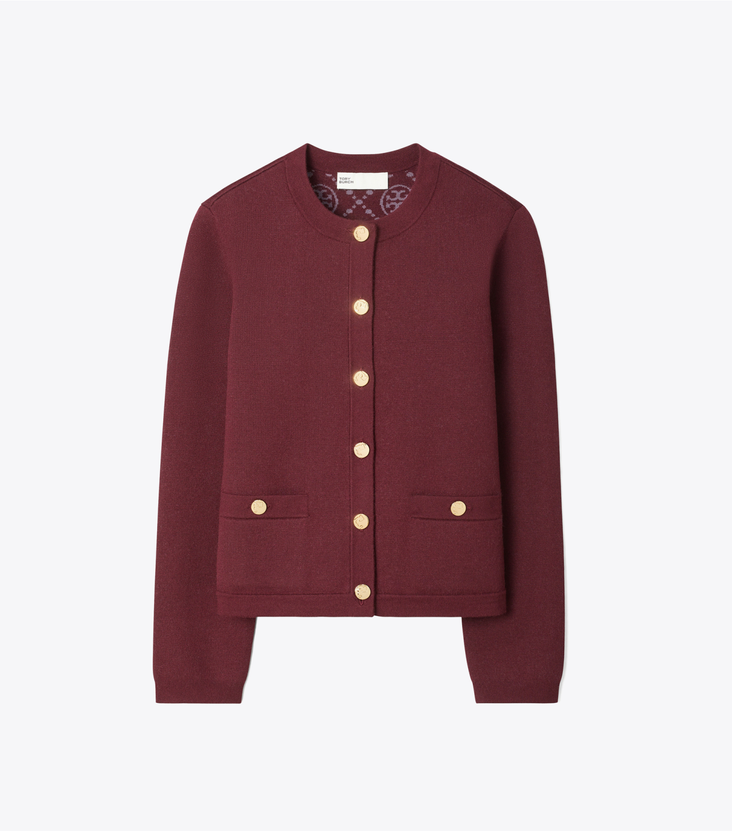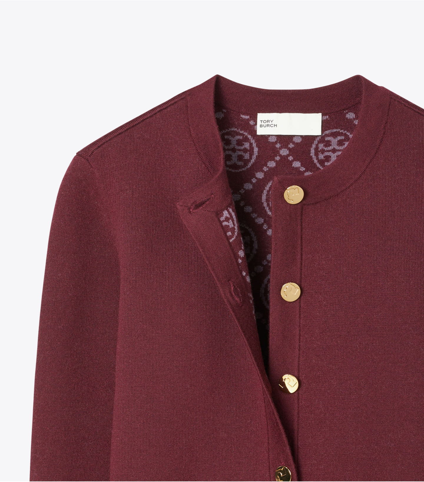马年特别系列,尽释骏马的风格本质:优雅自信、充满力量。堪称量身定制的淑女风毛衣。这款Kendra 开衫,精选柔软羊毛制成,搭配亮面金属纽扣,内里饰有 T Monogram 提花。