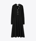 秋季系列,焕新重塑经典美式运动服,彰显时尚新风尚。这款羊毛连衣裙,以轻盈、透气舒适的面料编织而成,带有轻微弹力,穿着舒适。并采用沿整个 V 领排列的 纽扣设计,彰显品牌格调。