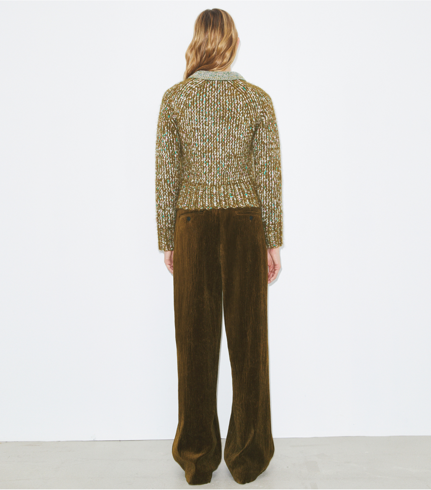 秋季系列,焕新重塑美式经典运动服,彰显时尚新风尚。这款羊毛毛衣,采用羊驼毛、羊毛与羊绒混纺面料织就,搭配撞色衣领。巧妙打造层叠穿搭的视觉效果,却不显臃肿。