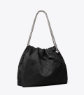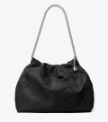 Fleming 肩背包,采用菱格纹褶饰设计,焕新演绎运动风尚。宽松廓形慵懒随性。搭配链条背带与双 T Logo 吊饰。