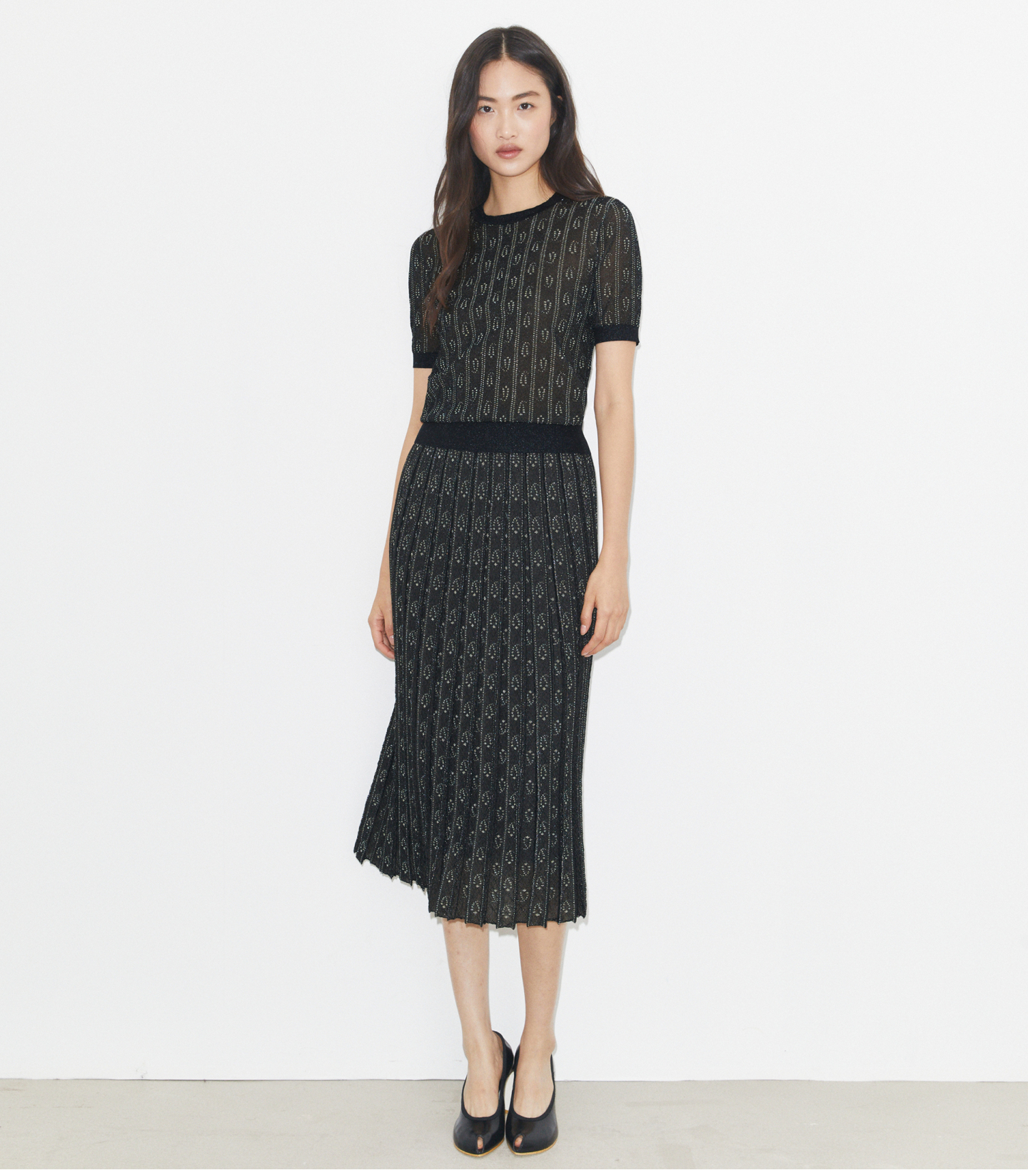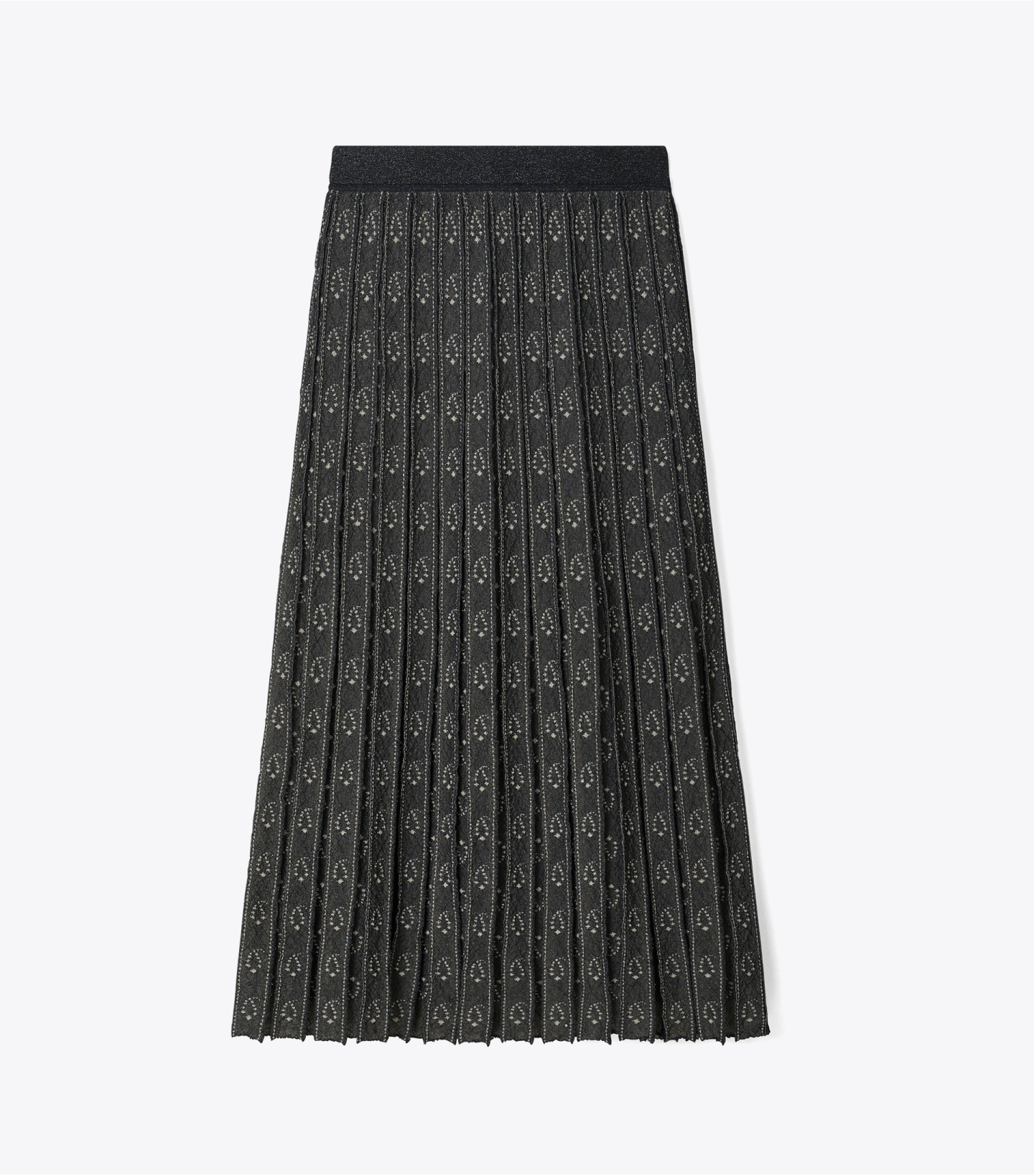 这款褶裥提花针织半身裙,采用精选面料打造,可持久保持廓形;饰以现代风佩斯利花纹,焕新演绎七十年代运动装风格。作为百搭单品,日常可打造多样穿搭。