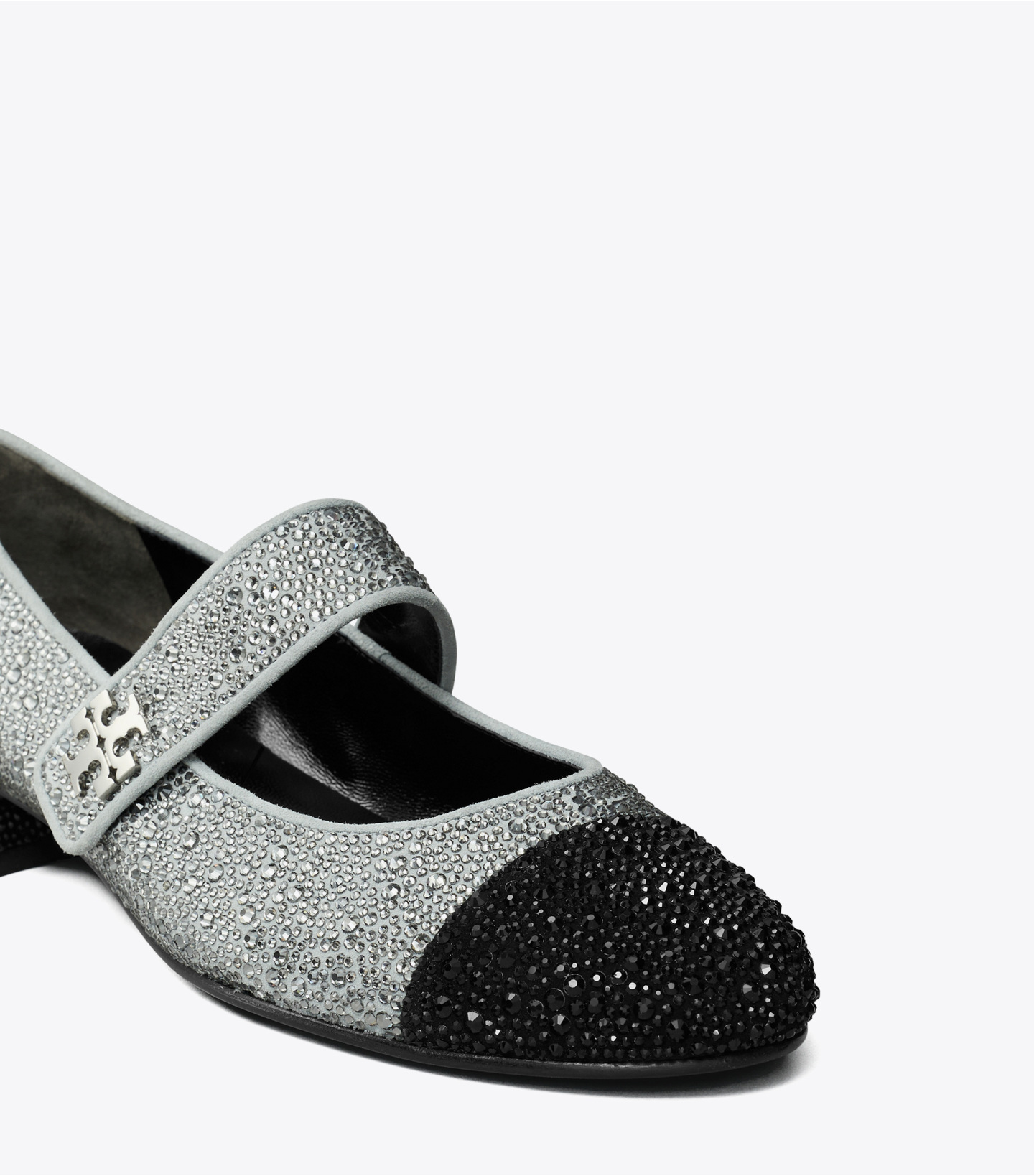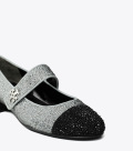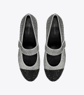 这款芭蕾高跟鞋,采用经典玛丽珍鞋型,搭配拼色鞋头细节,优雅隽永。微喇廓形搭配低方跟设计,采用易于穿脱的贴心设计,配有双 T 饰件的扣带,则巧妙隐藏于装饰鞋带之下。