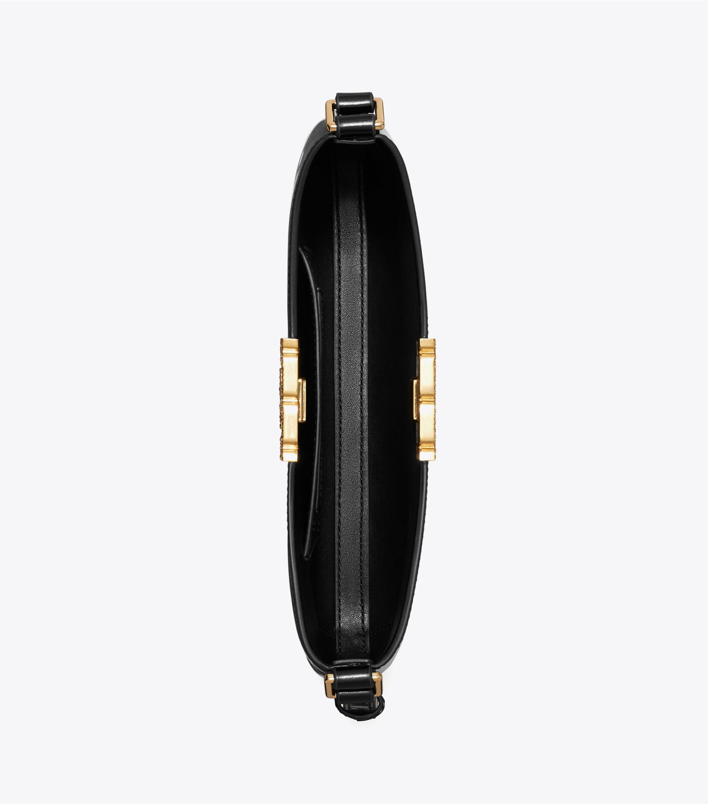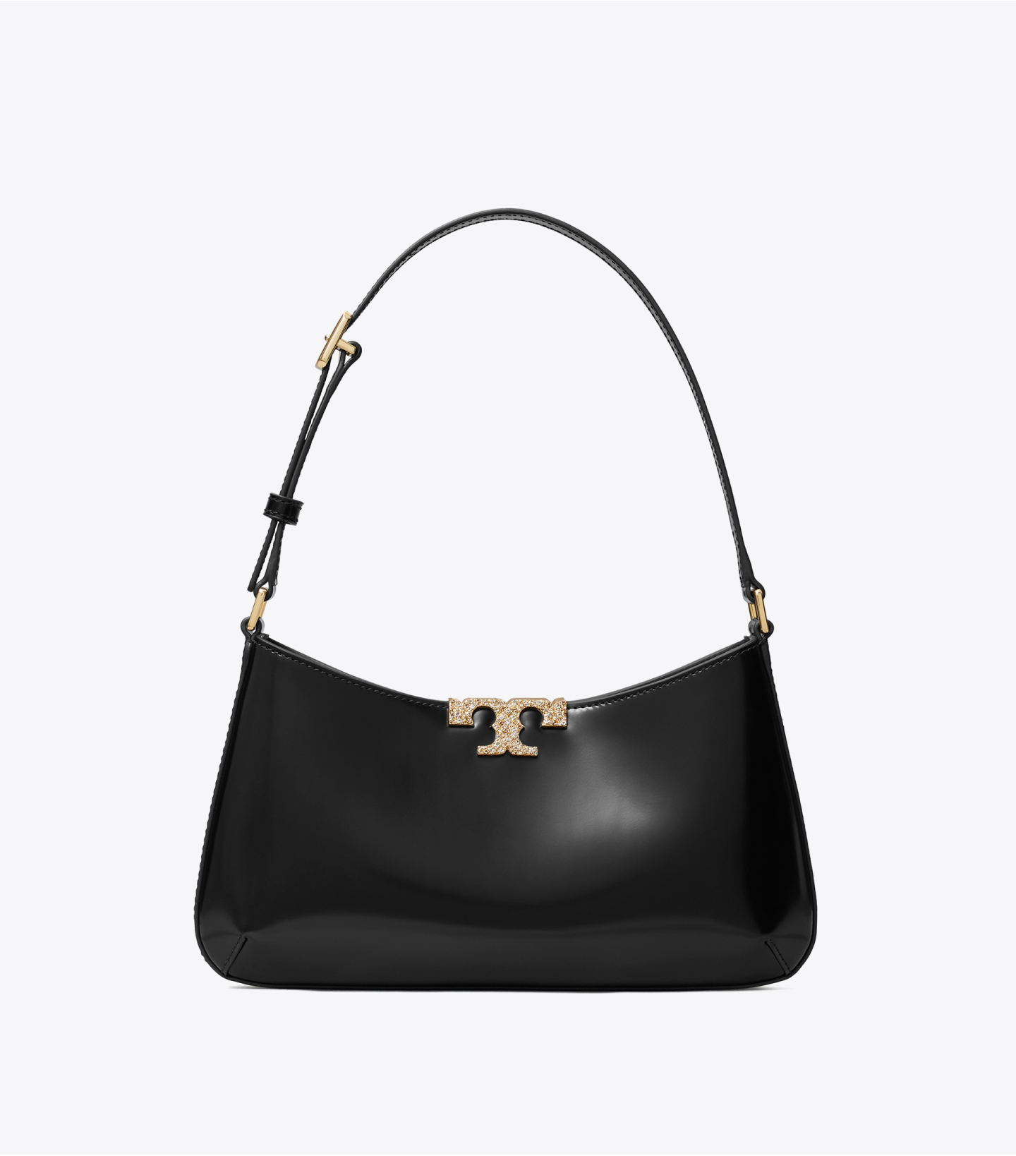 如珠宝般精致的匠心之作,华美内敛,并行不悖。雕塑感金属配件,曲线大胆流畅,与简洁线条相得益彰,融入密镶设计,更显时尚。Eleanor Slim 肩带包,精选光滑皮革材质打造,配以磁力按扣开合和可调节肩带。设计灵感源自 90 年代的包型风格,可作腋下包,是夜晚赴宴的理想包袋。