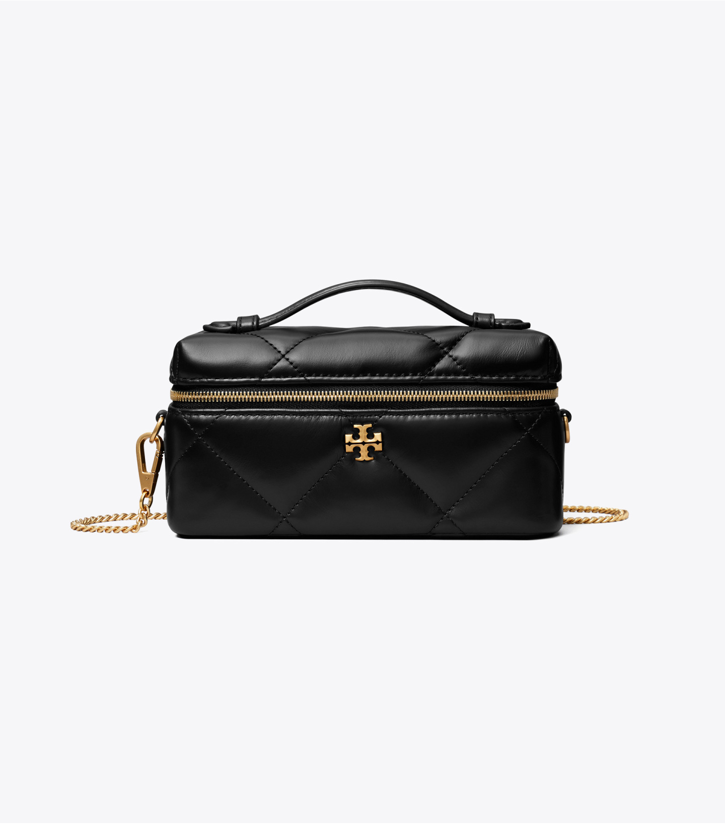迷你包款采用复古风格,引领时尚潮流。Kira 菱格纹绗缝 Vanity 斜挎包,材质柔软经久耐用,菱格纹绗缝立体蓬松。柔软质感与立体剪裁,充分演绎经典廓形,搭配斜面双 T Logo 饰件,更显时尚。可使用顶部提柄手提,或使用饰有吊坠的可拆卸斜背带斜挎。
