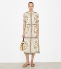 温暖时节,演绎休闲型格。这款连衣裙选用轻盈桑蚕丝与棉质混纺面料打造,配有手绘鹦鹉印花图案。上身巧妙收腰,搭配隐藏式拉链,下接优雅垂坠的小 A 字半身裙。短袖采用微弹力设计,并配有侧缝口袋。
