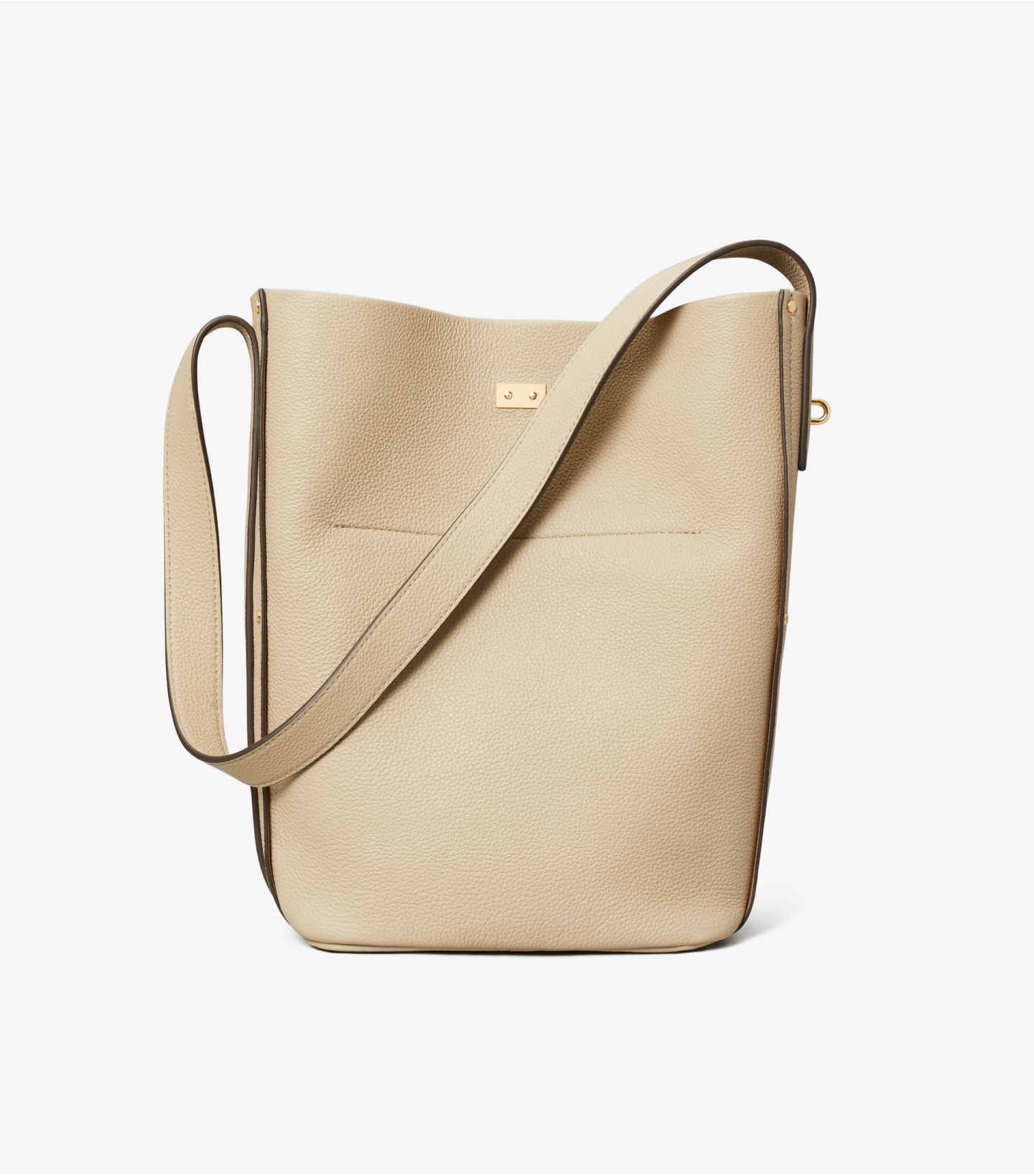 这款纤巧锁扣水桶包,造型松弛却不失精致感,是一款经典的日常手袋,其命名灵感源于一枚精致挂锁,既可用作实用的开合装置,亦可纯粹作为装饰元素。精选荔枝纹皮革打造,柔软廓形可轻松收纳钱包、平板电脑、太阳眼镜与水杯。内设有口袋,便于有序收纳各种随身小物。
