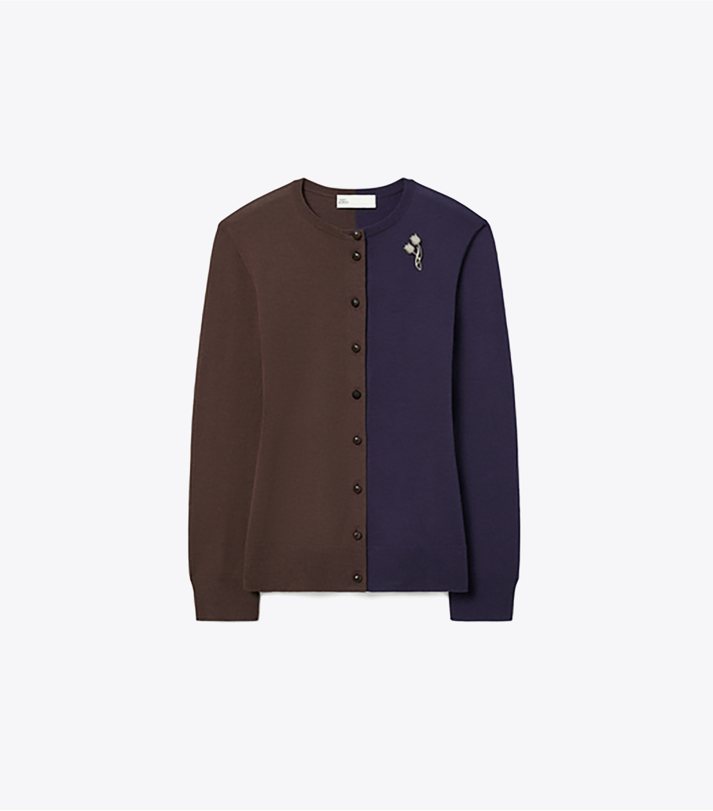 新款系列,以焕新元素重塑运动经典运动服,彰显时尚新风尚。亮相于2025年秋季时装秀的双色开衫。衣袖采用内侧开衩设计,可环绕颈部用作围巾,亦可使用随附郁金香胸针,将衣袖固定于前襟。细腻针织质地,搭配同款衬衫,打造个性造型。