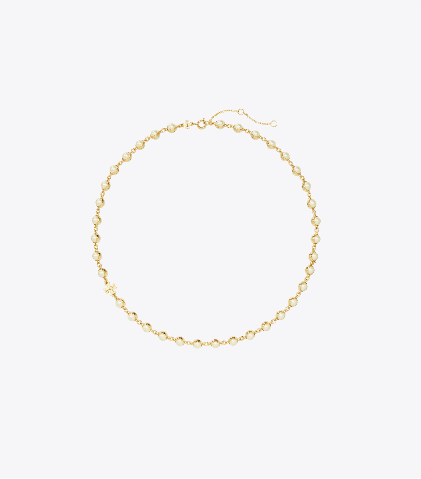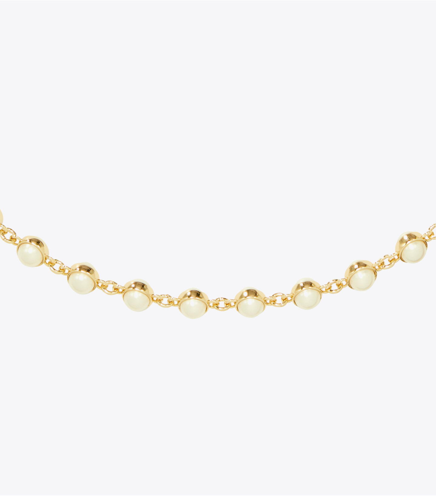 将月亮的光辉与神秘,凝结于珍珠之中,成为代代相传的珍贵信物。Moondance 月影流光系列项链,饰以树脂珍珠与镀金黄铜。既可单独佩戴,也可与其他链条和吊坠混搭叠戴。