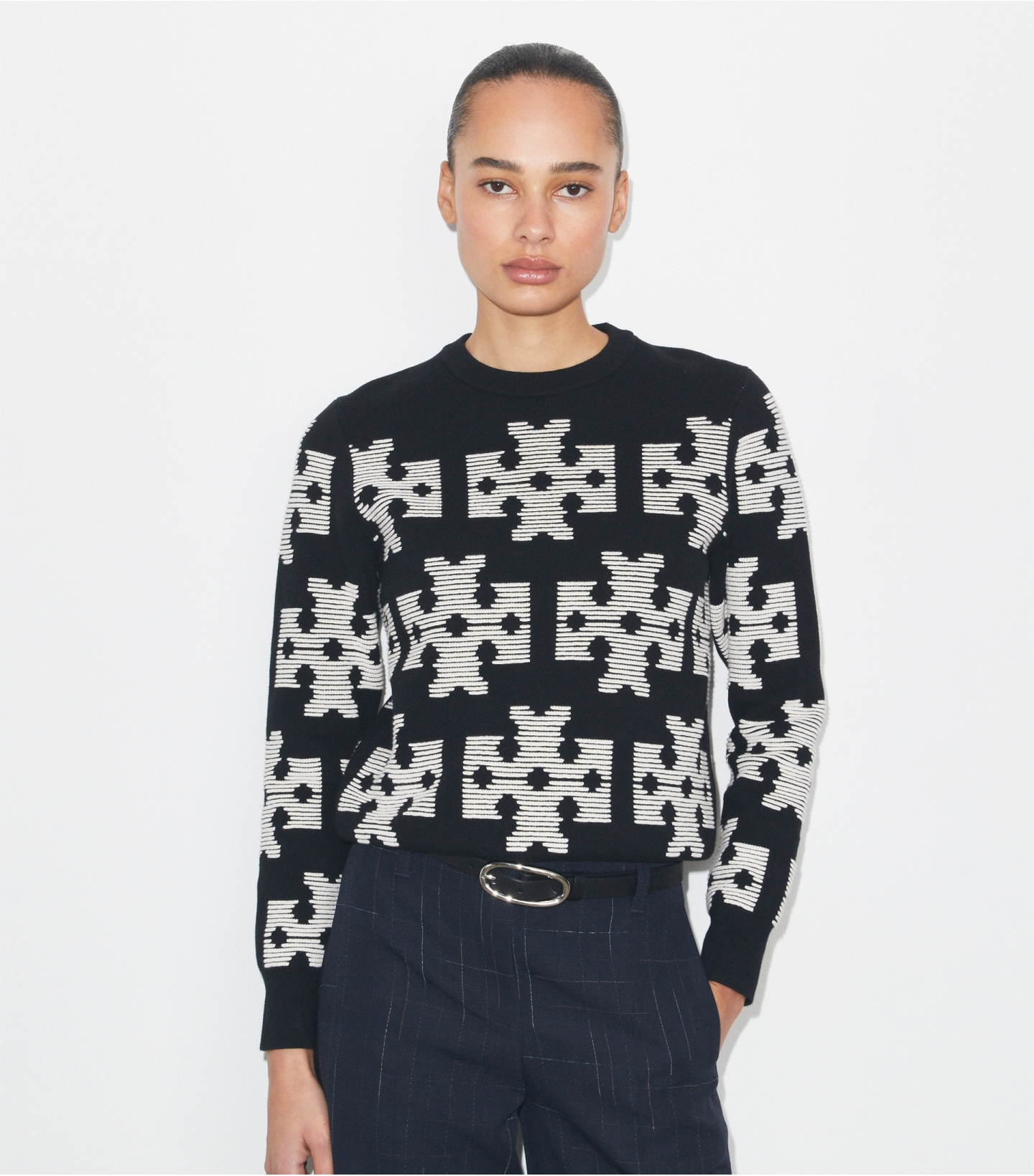 这款宽松毛衣,采用棉质面料制成,正面饰以标志性双 T Logo。搭配点睛图案设计,四季皆可穿搭。