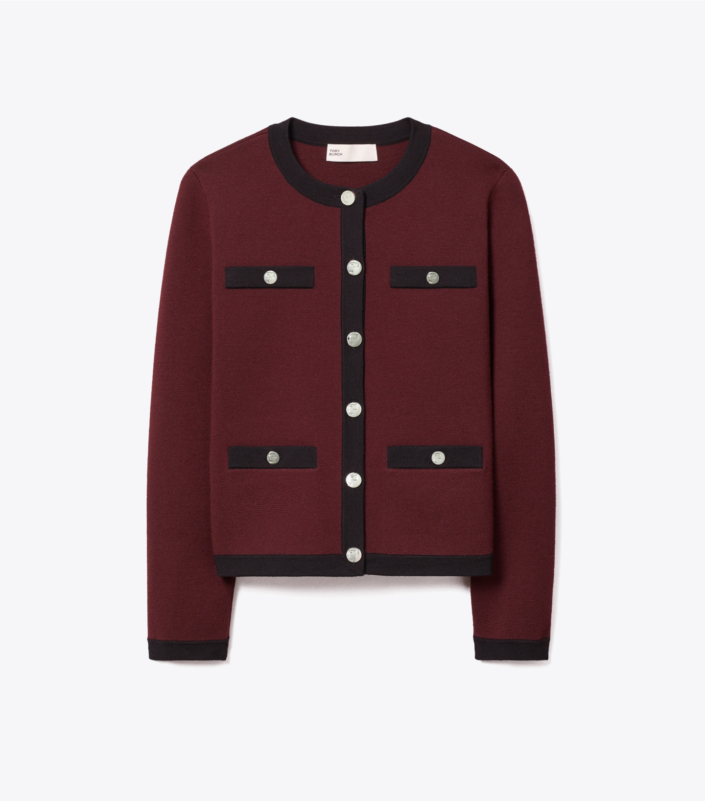 堪称量身定制的淑女风毛衣。这款Kendra 开衫,精选柔软羊毛编织而成,配有撞色饰边和抛光金属纽扣。