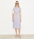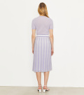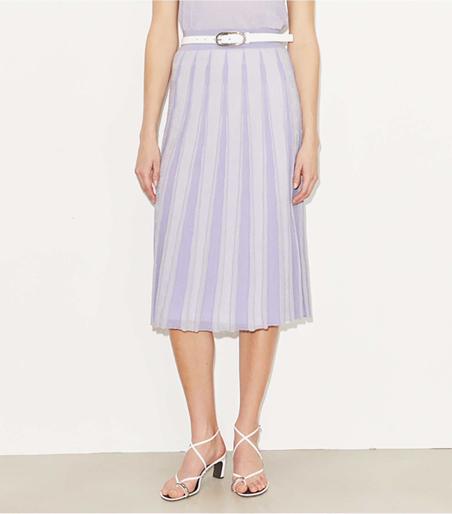 线条柔美,廓形流畅,尽显女性优雅气质。这款褶裥棉质半身裙,织有品牌标志性 T Monogram 图案与细腻同色调条纹,更添飘逸垂坠感。是旅行必备的精致舒适单品。