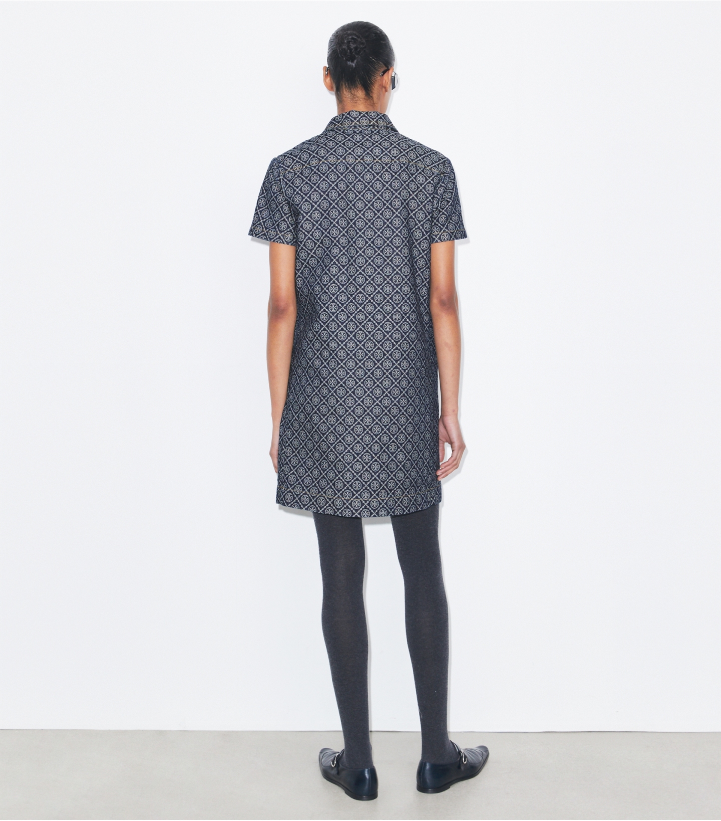 这款衬衫裙采用牛仔提花织物打造,饰以品牌标志性 T Monogram 图案。兼具舒适质感与雅致格调,可单独外穿,亦可叠穿。