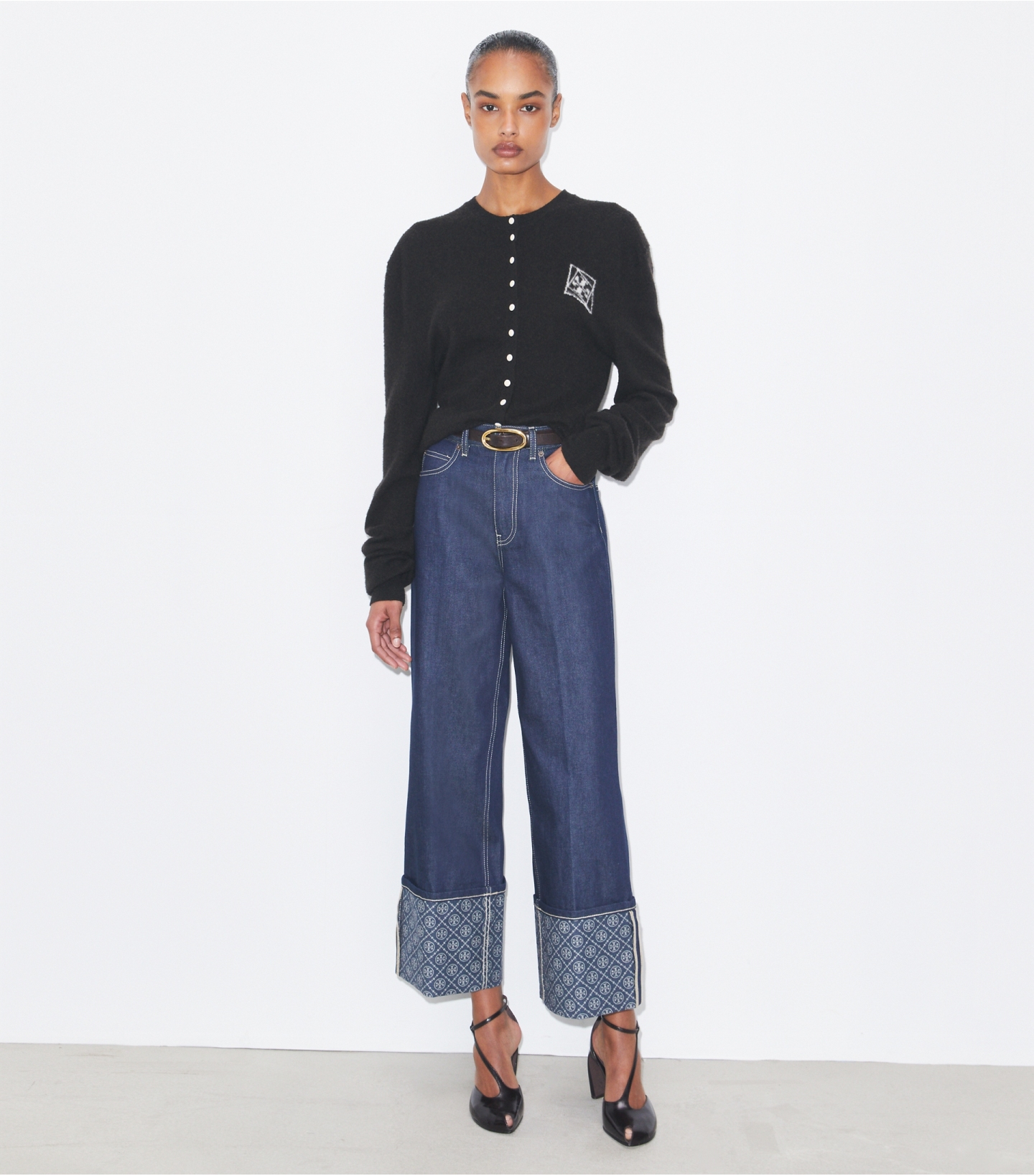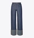 甄选自 2026 度假系列,以独特视角重塑经典运动风。这款经典五袋牛仔裤,甄选面料打造,采用直筒裤型,搭配宽幅撞色裤脚,并饰以品牌标志性 T Monogram 印花。