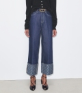 撞色裤脚直筒牛仔裤