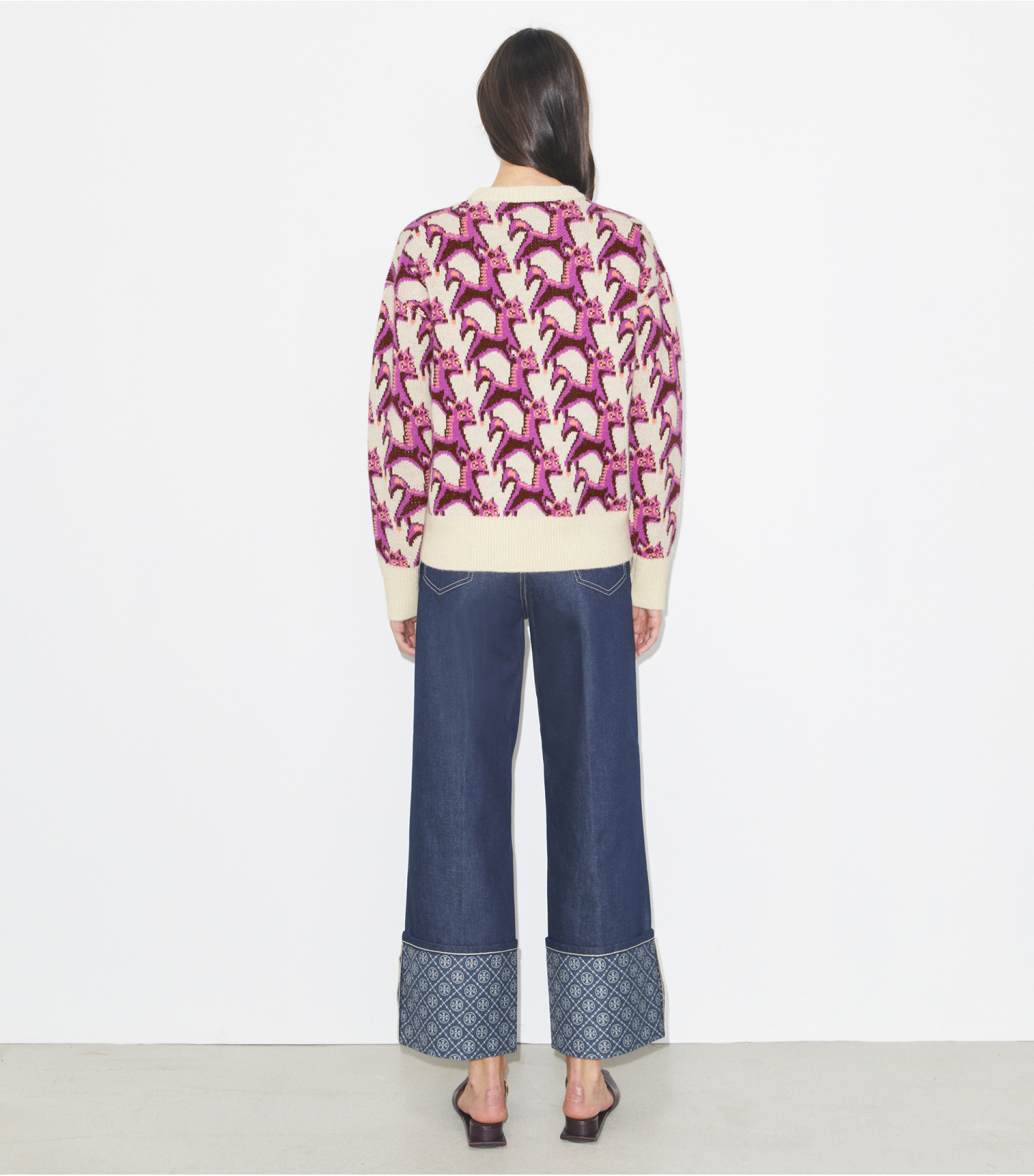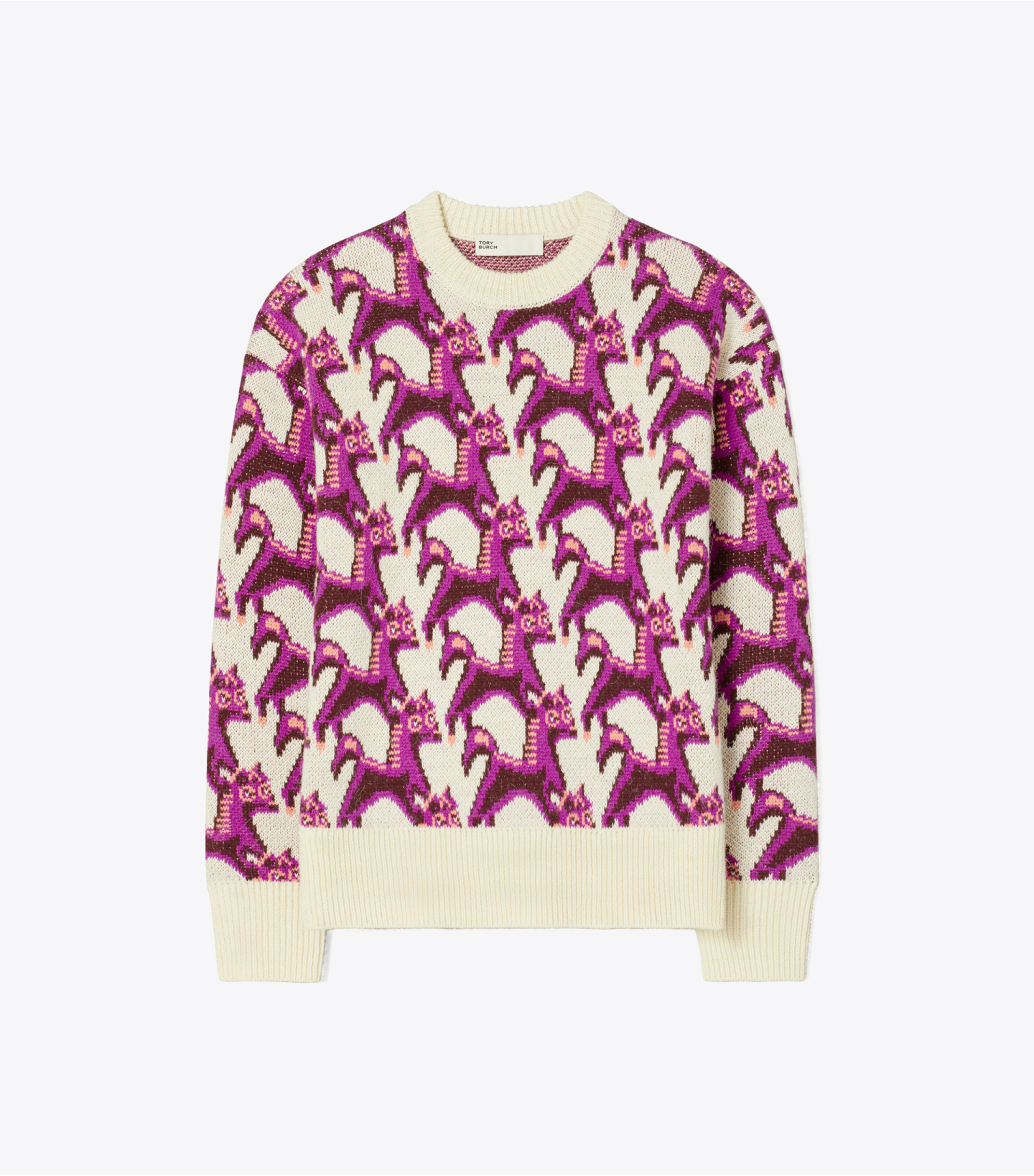 马年特别系列,尽释骏马的风格本质:优雅自信、充满力量。这款圆领毛衣,精选柔软羊毛制成,采用宽松版型,舒适温暖;饰以小马提花图案,为经典之作注入灵动活力。