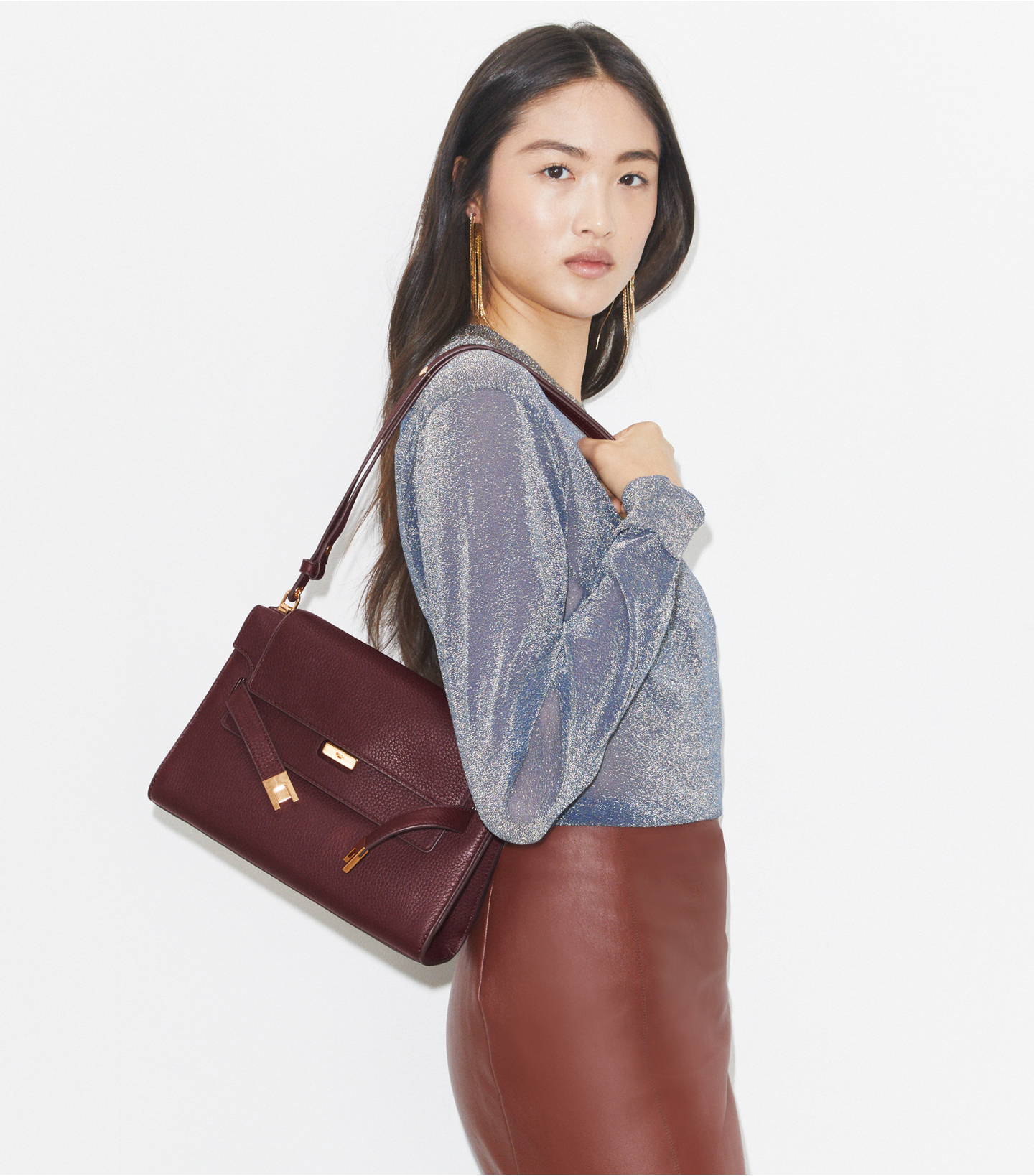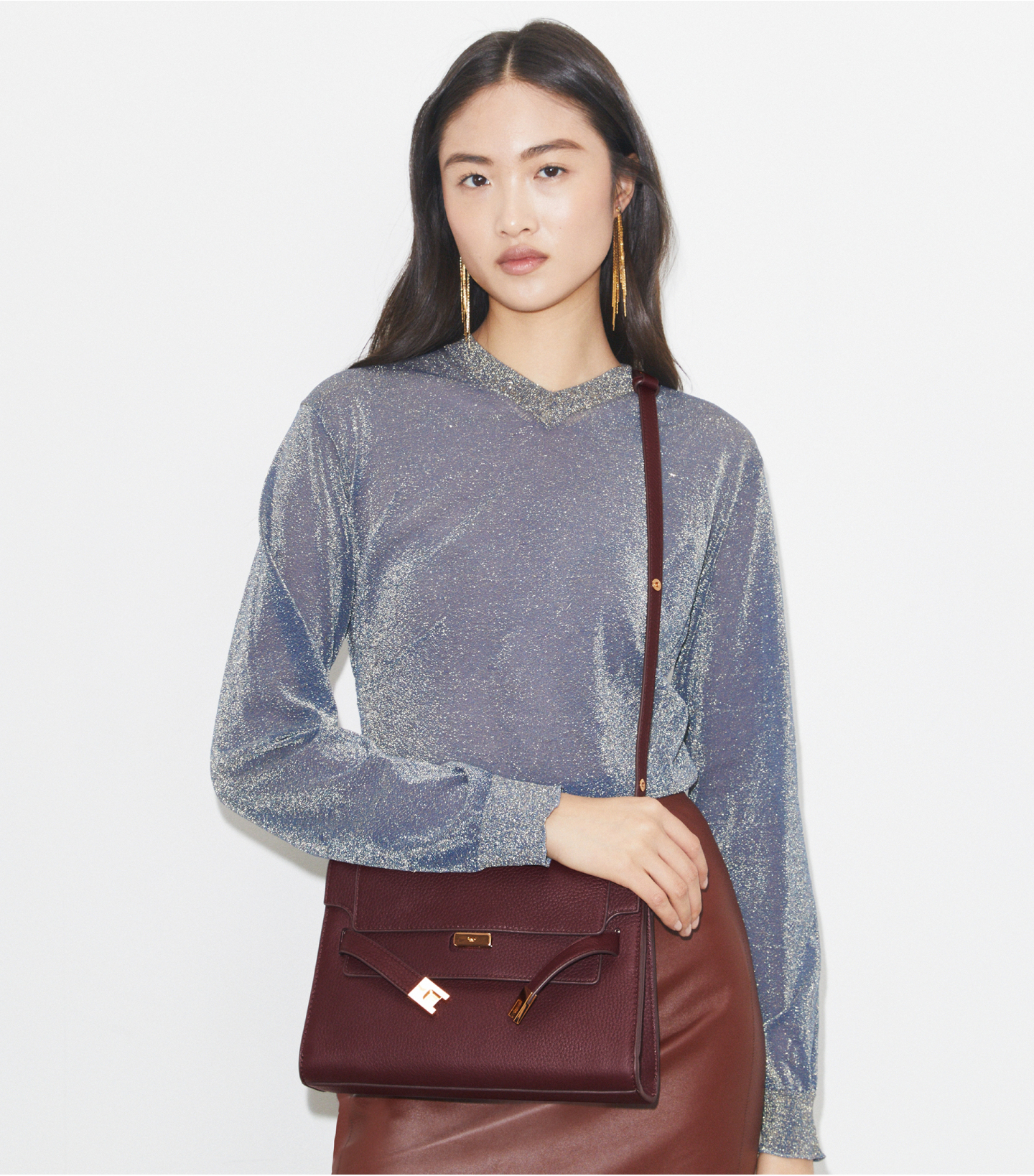 Lee Radziwill 肩背包精选荔枝纹皮革而制,配有柔软内衬,翻盖下饰有品牌刺绣细节。包身挺括有型,饰以标志性的 T 型锁扣带。背带配有光滑按扣。该系列以 Lee Radziwill 女士命名,她勇敢无畏,自成一派。