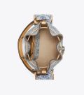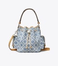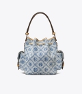 品牌经典图案。T Monogram 水桶包精选面料打造,纹理独特,触感柔软。配有可调节顶部提柄,可挎在肩部,另有可拆卸斜背带,可随心变换背法。可通过金属双 T Logo 按扣调节抽绳长度。按压按扣可调节抽绳,松开即会锁上。配备两个外部侧面口袋,便于取用随身小物。