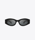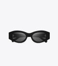超现实品牌标志性元素,创意打造前卫太阳眼镜。椭圆形镜框以金属环为核心设计,营造出镜腿被穿透的错视效应。