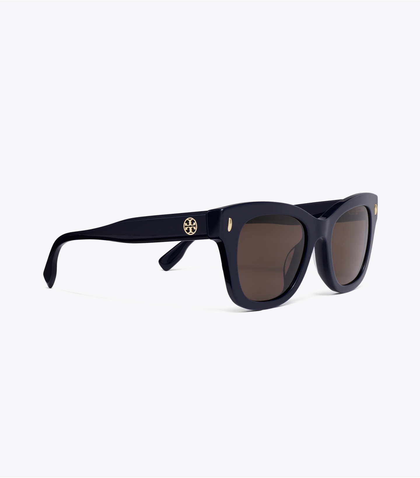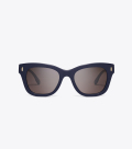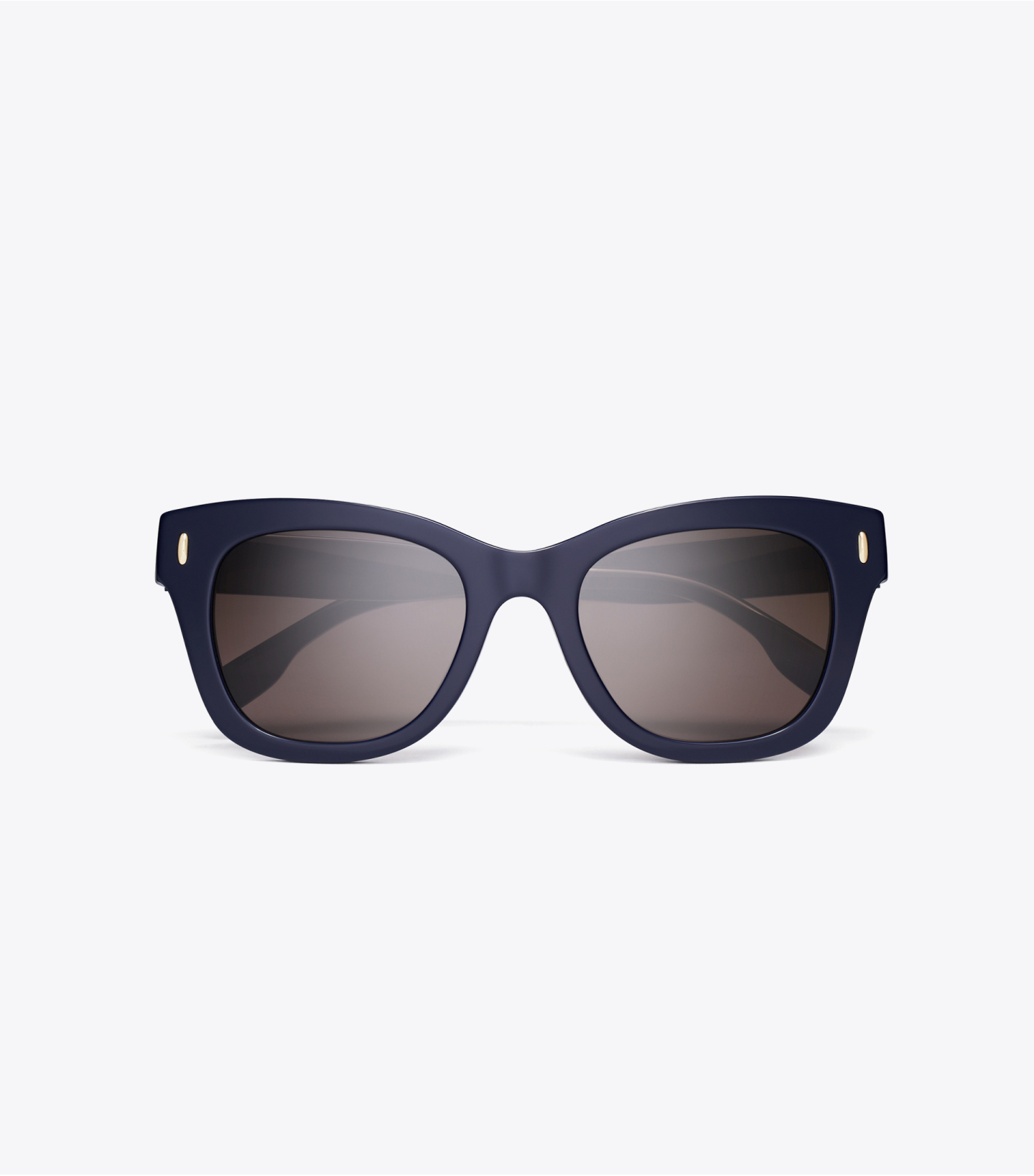 经典 Wayfarer 太阳眼镜,正面饰以金属缝线,双 T Logo 镶嵌于斜面镜腿。