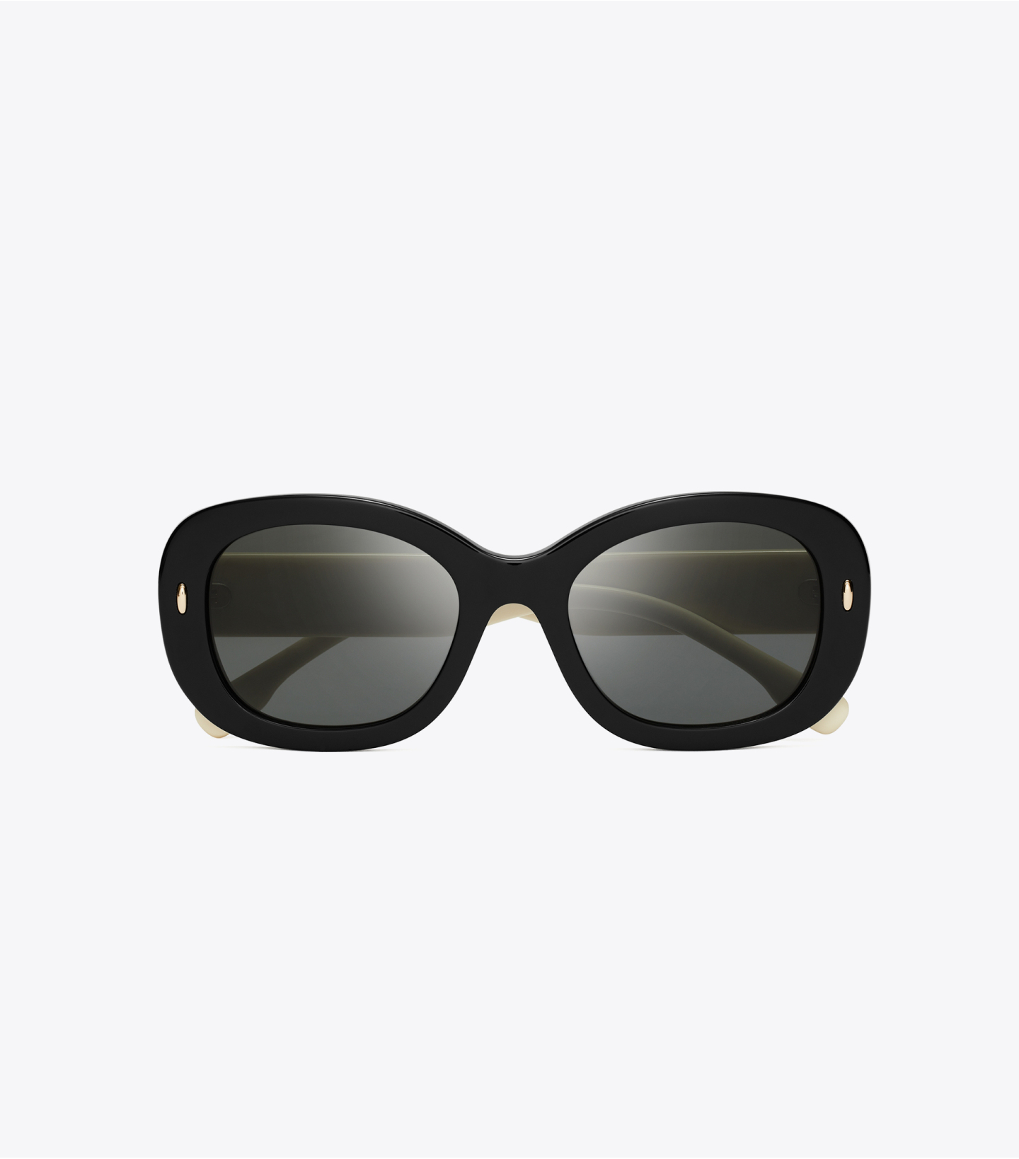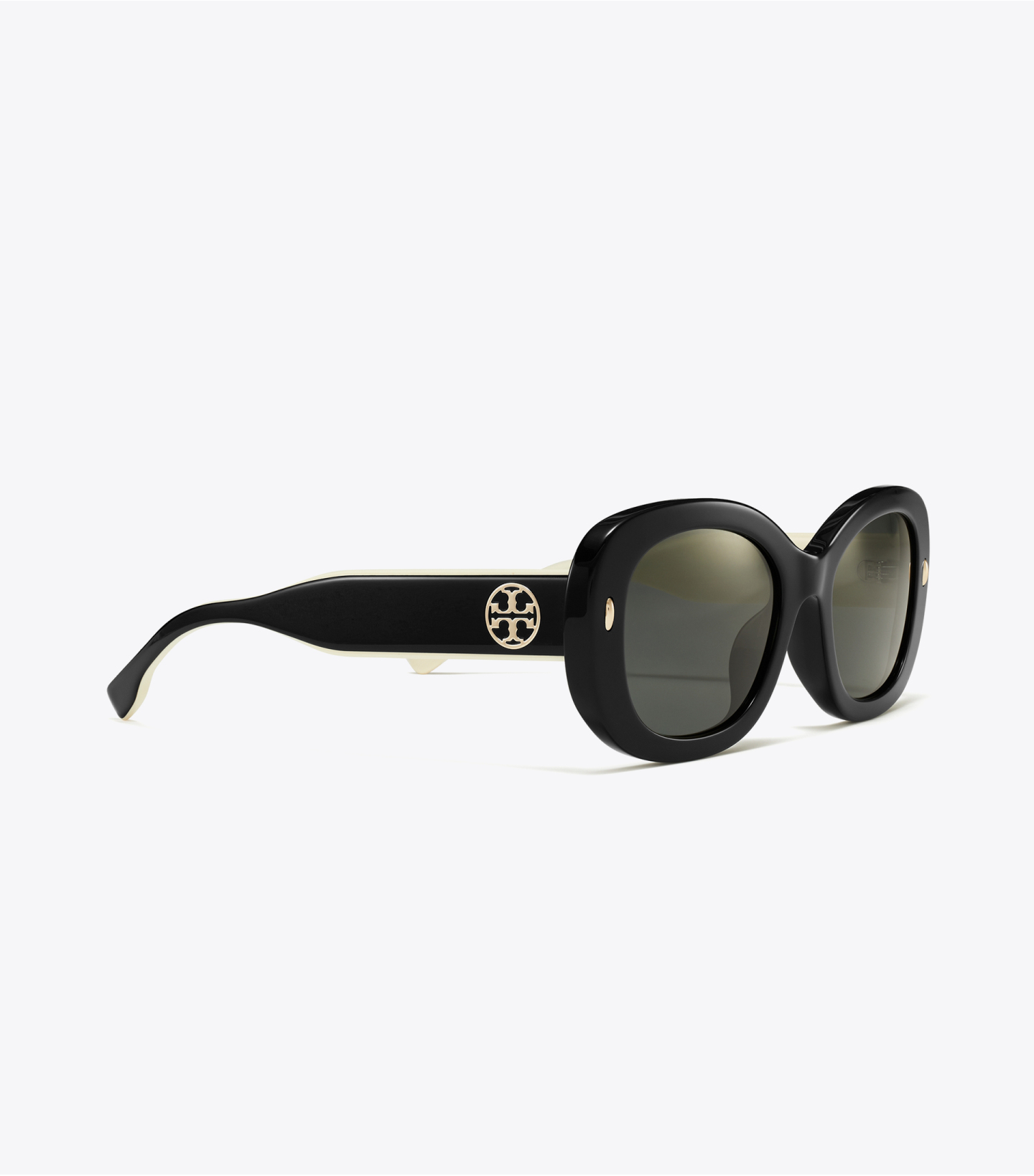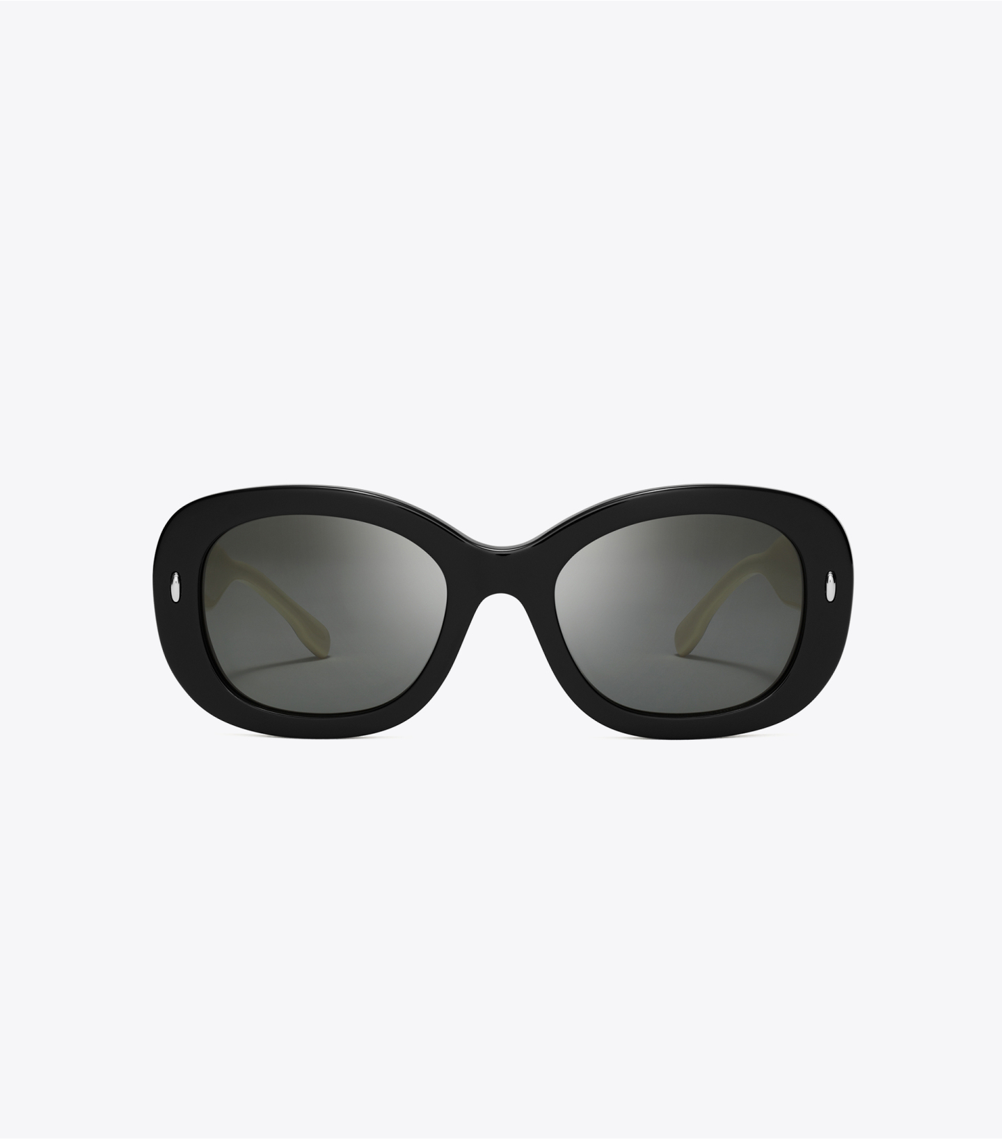 Miller 太阳眼镜,采用复古款椭圆形镜框设计,正面饰以金属缝线,镶嵌有双 T Logo。